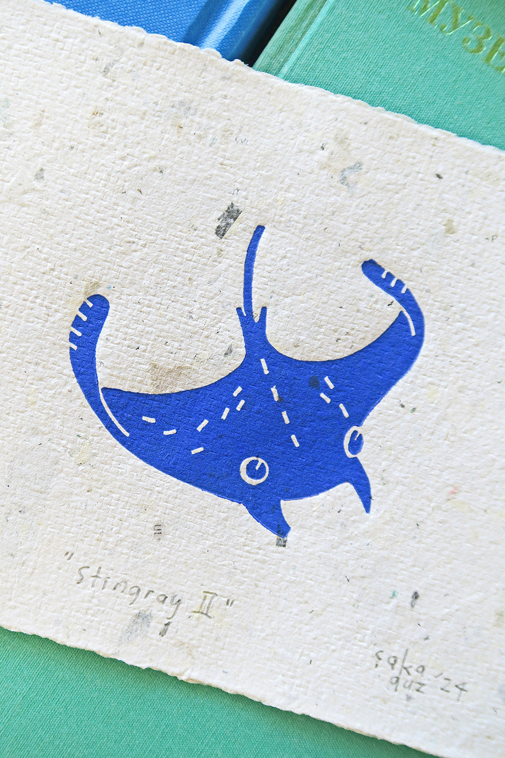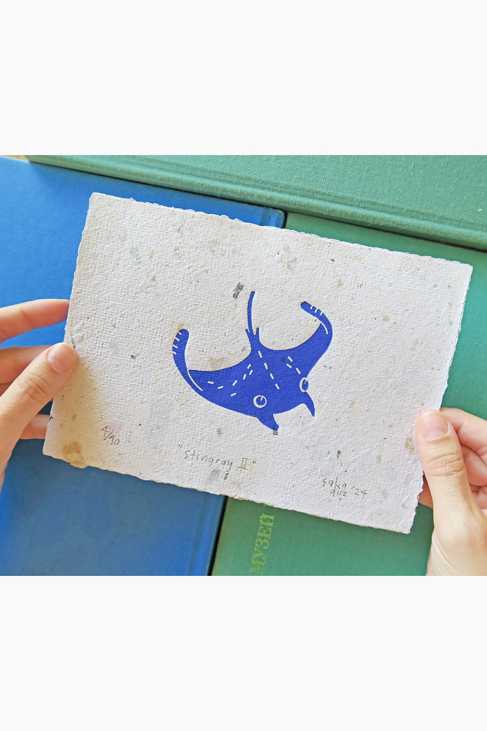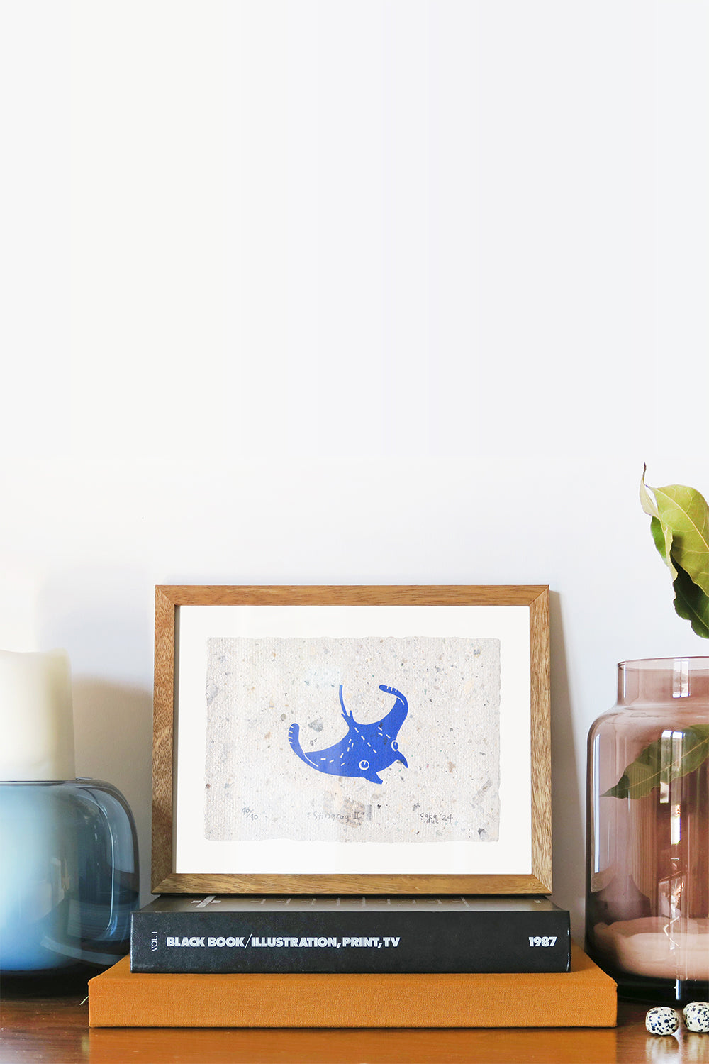 * Geri dönüştürülmüş el yapımı kağıt üzerine linol baskı.* 10 baskıdan oluşan sınırlı bir baskıdır.