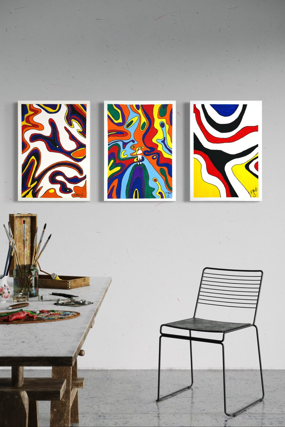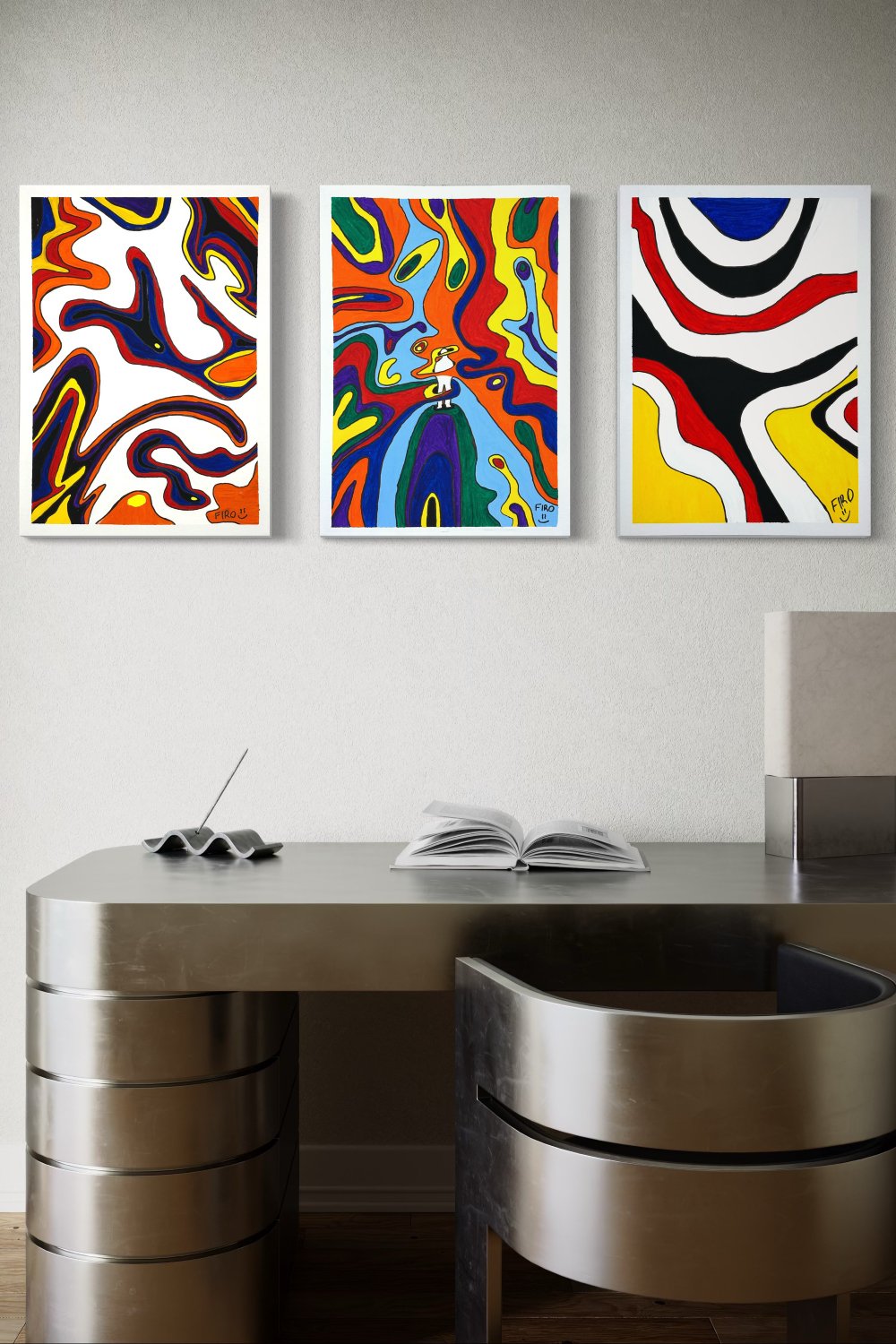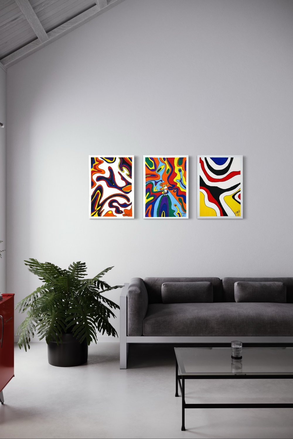 Bu çalışma, insan ruhunun derinliklerine yapılan bir keşif yolculuğunun görsel tasviridir. Her bir renk, yaşamın sunduğu farklı duyguları temsil ederken, soyut formlar bilinçaltının akışkan ve keşfedilmemiş doğasını gözler önüne seriyor. Bu yolculuk, karmaşıklık ve huzuru bir arada sunuyor; kaostan doğan düzenin ve her duygunun içinde saklı anlamın bir ifadesi. Ortadaki figür, renkli ve dinamik bir dünyada kendi yolunu bulmaya çalışan insanı sembolize ediyor. Bu figür, yalnızca bir bireyi değil, her birimizin yaşam yolculuğunda aradığı o derin bağlantıyı ve içsel huzuru temsil ediyor.