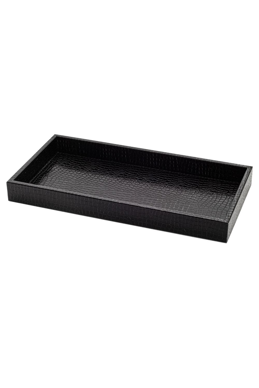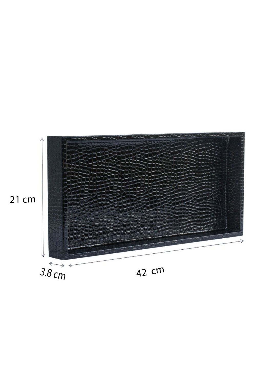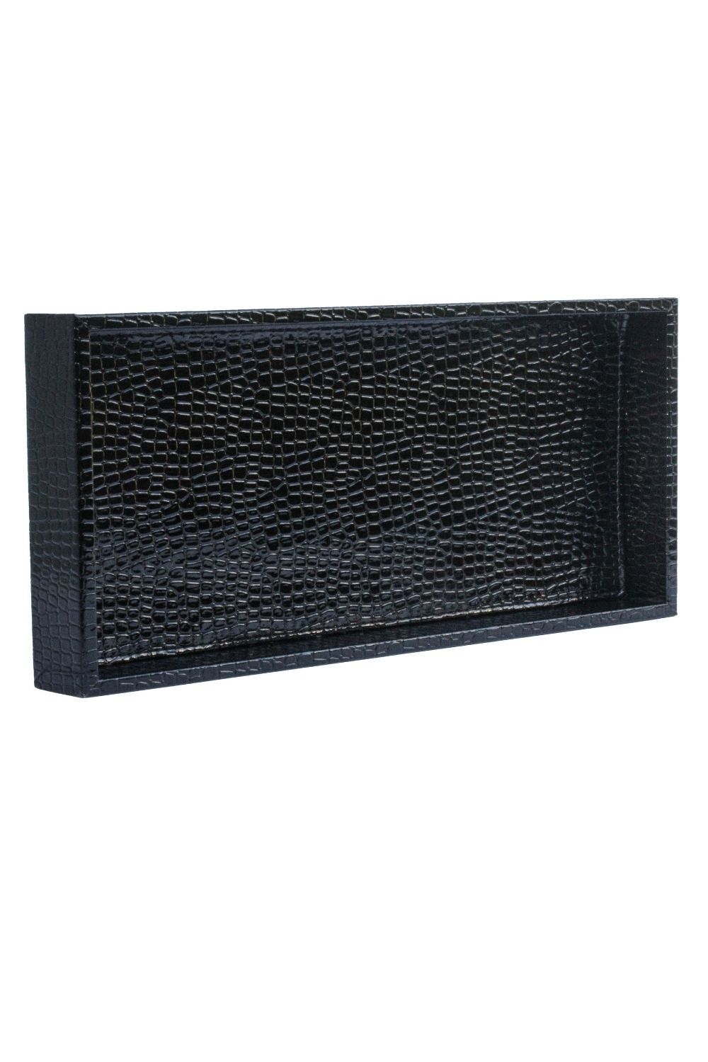 Boy Parlak Siyah Krokodil Desenli Suni Deri Tepsi