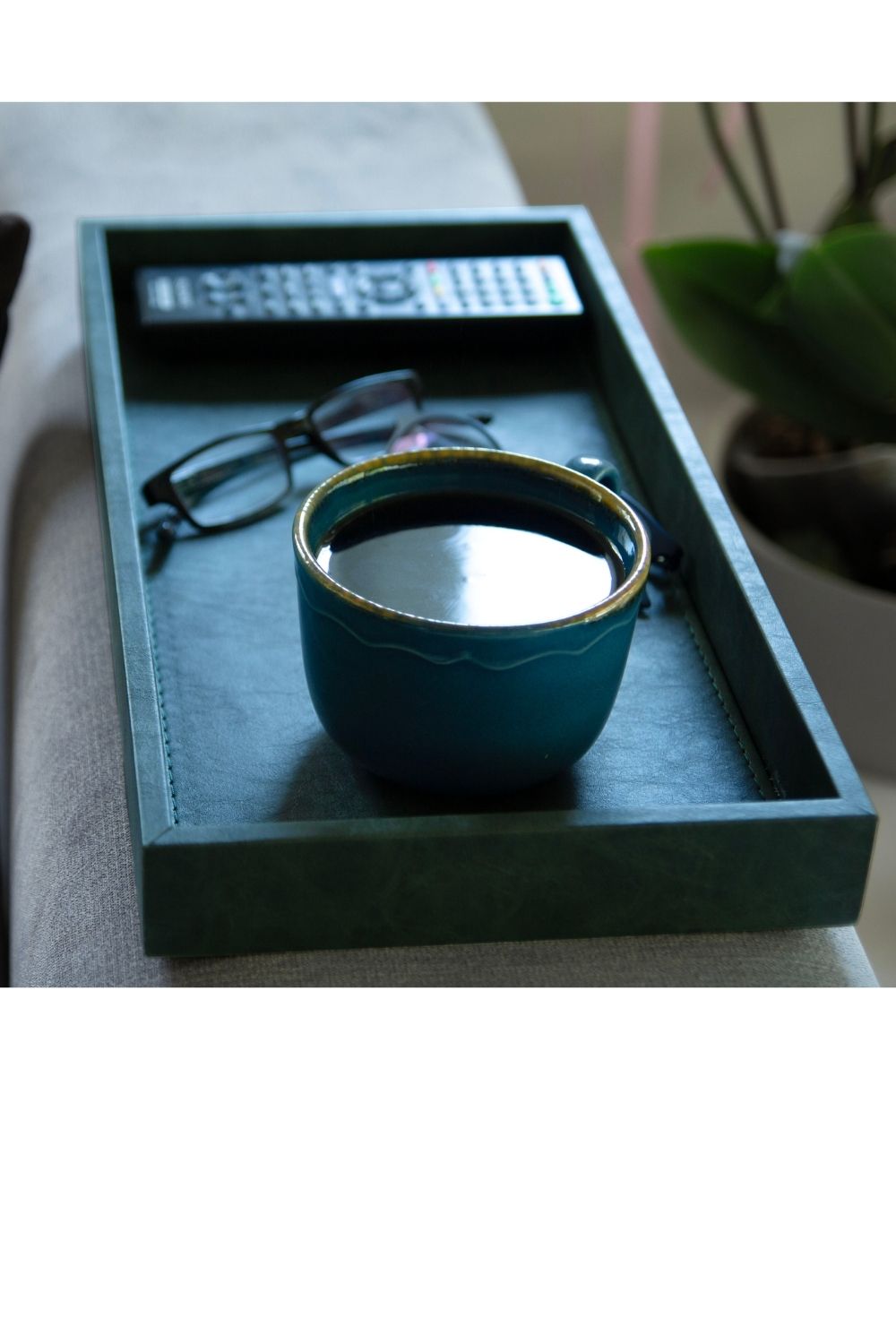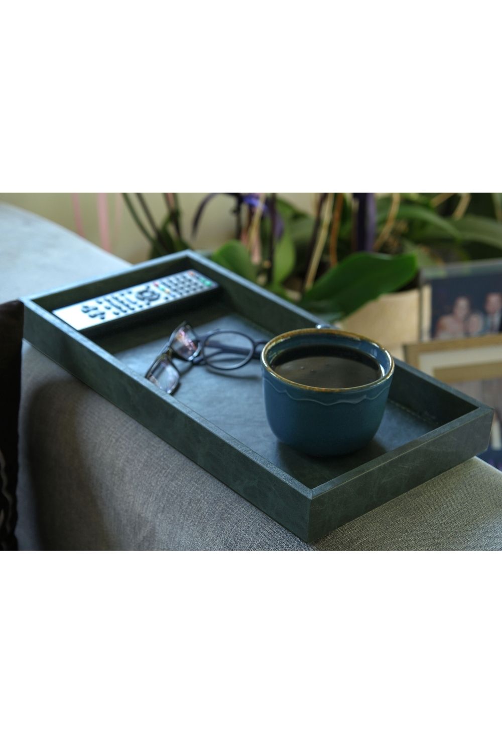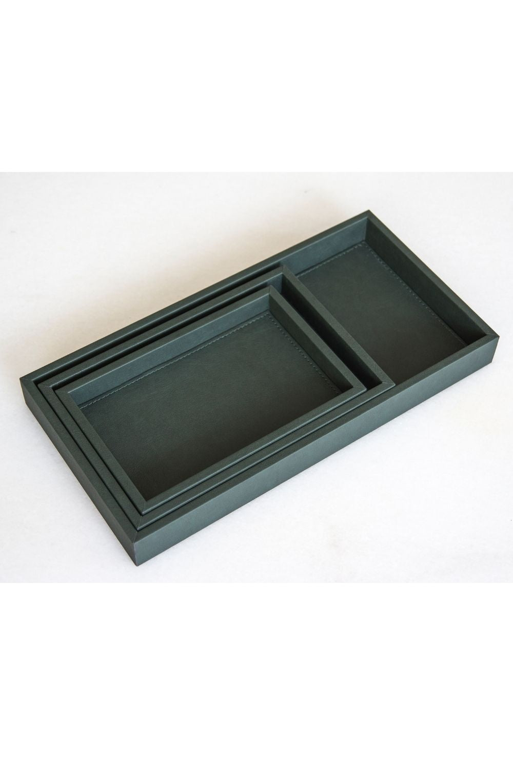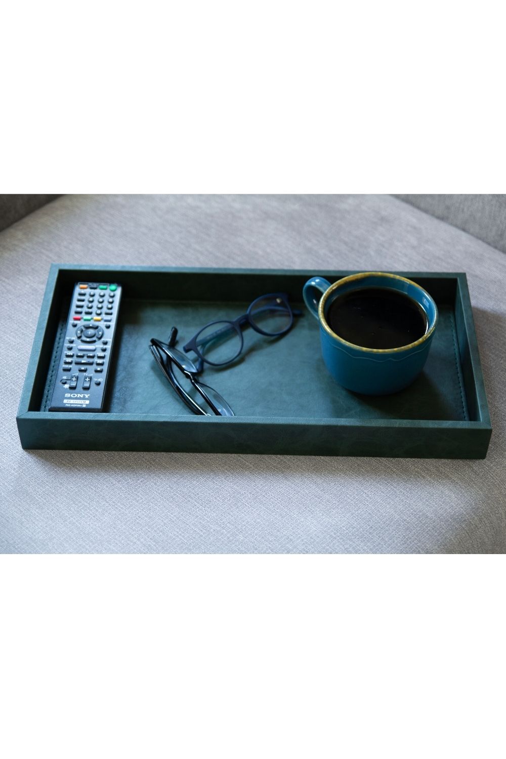 Büyük Boy Koyu Yeşil Suni Deri Tepsi