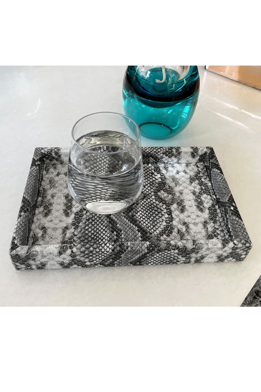 Dekoratif Küçük Boy Yılan Desenli Suni Deri Tepsi