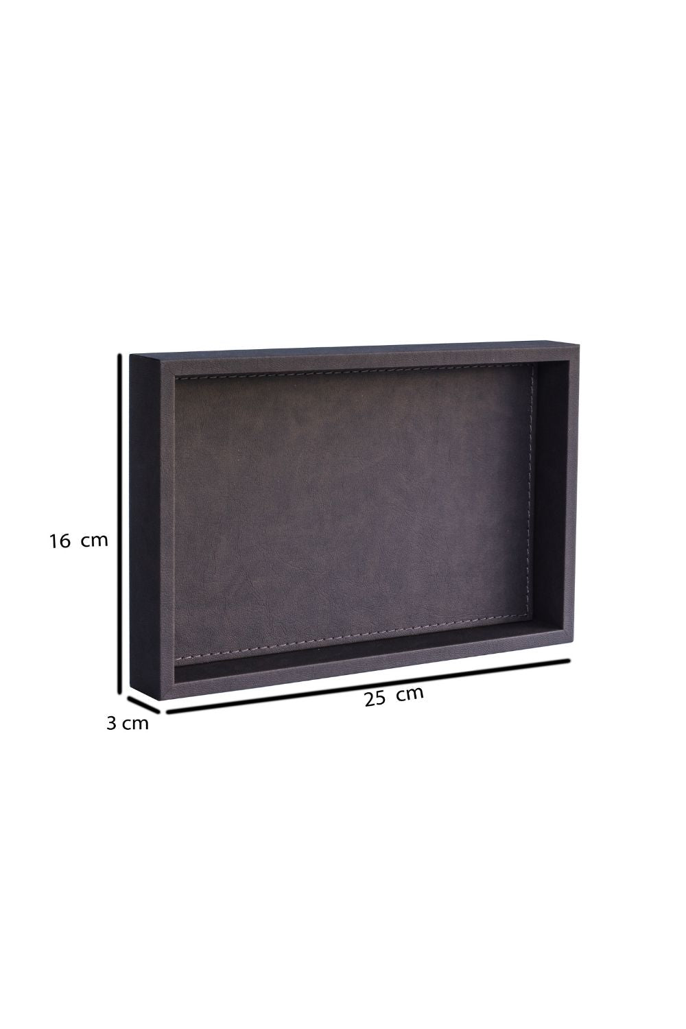 kahve tonuyla dikkat çeken bu küçük boy suni deri tepsi, zarif tasarımıyla hem