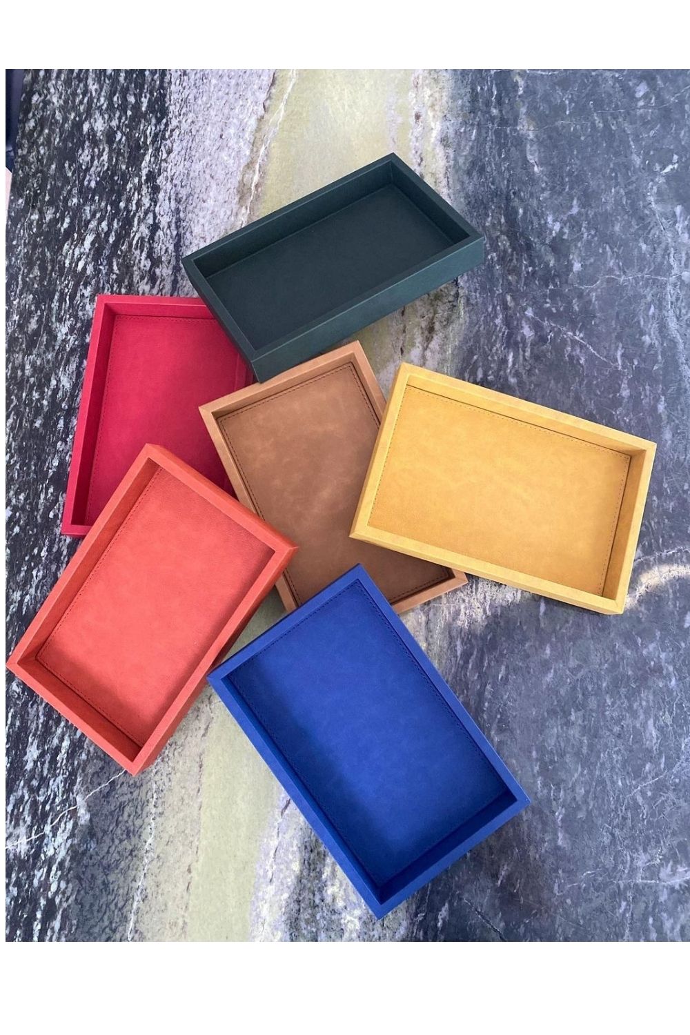 Deri tepsilerimiz üç farklı boyda ve çeşitli renk seçenekleriyle üretilmektedir. Farklı renkleri bir araya getirerek modern ve uyumlu sunum kombinleri oluşturabilirsiniz.