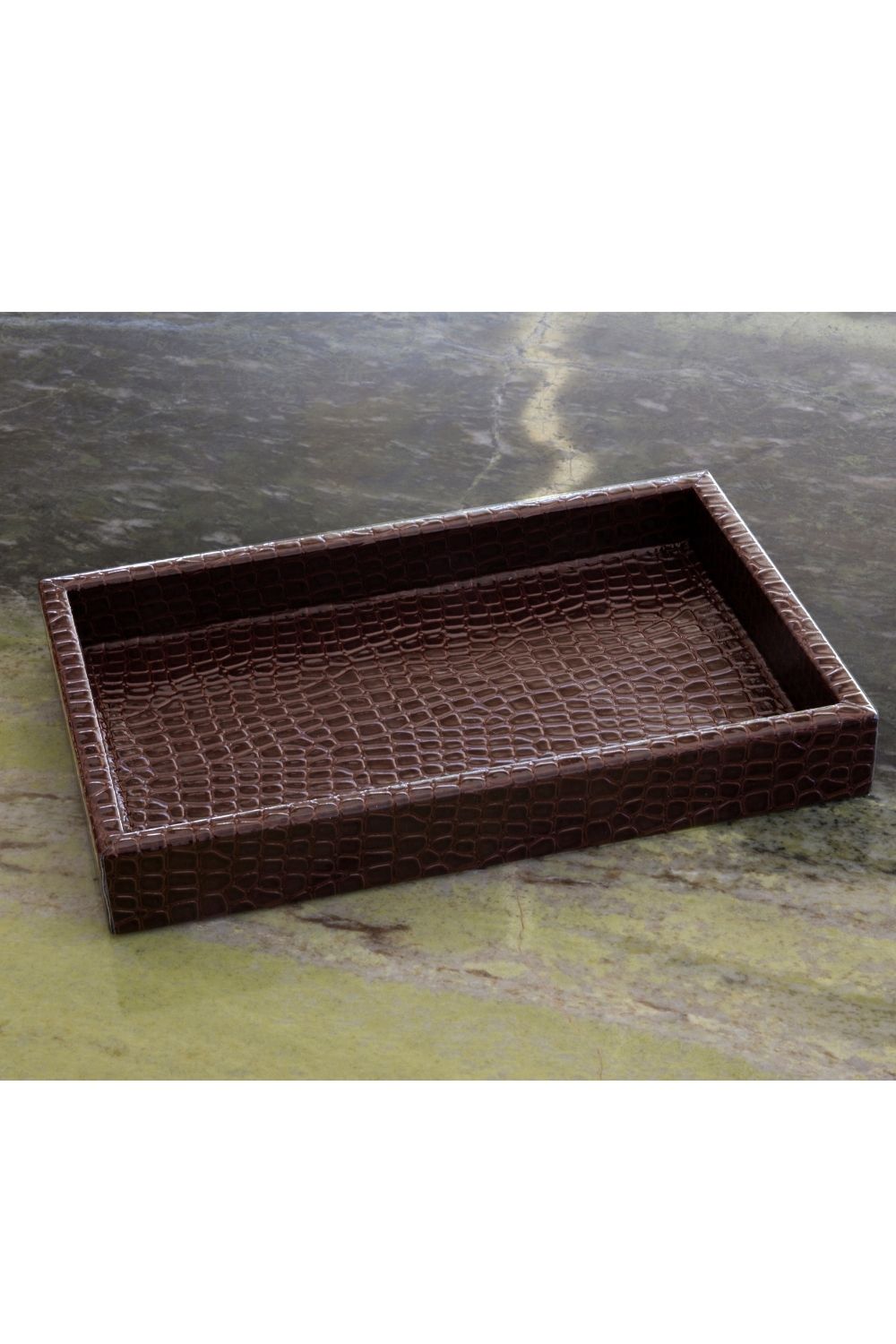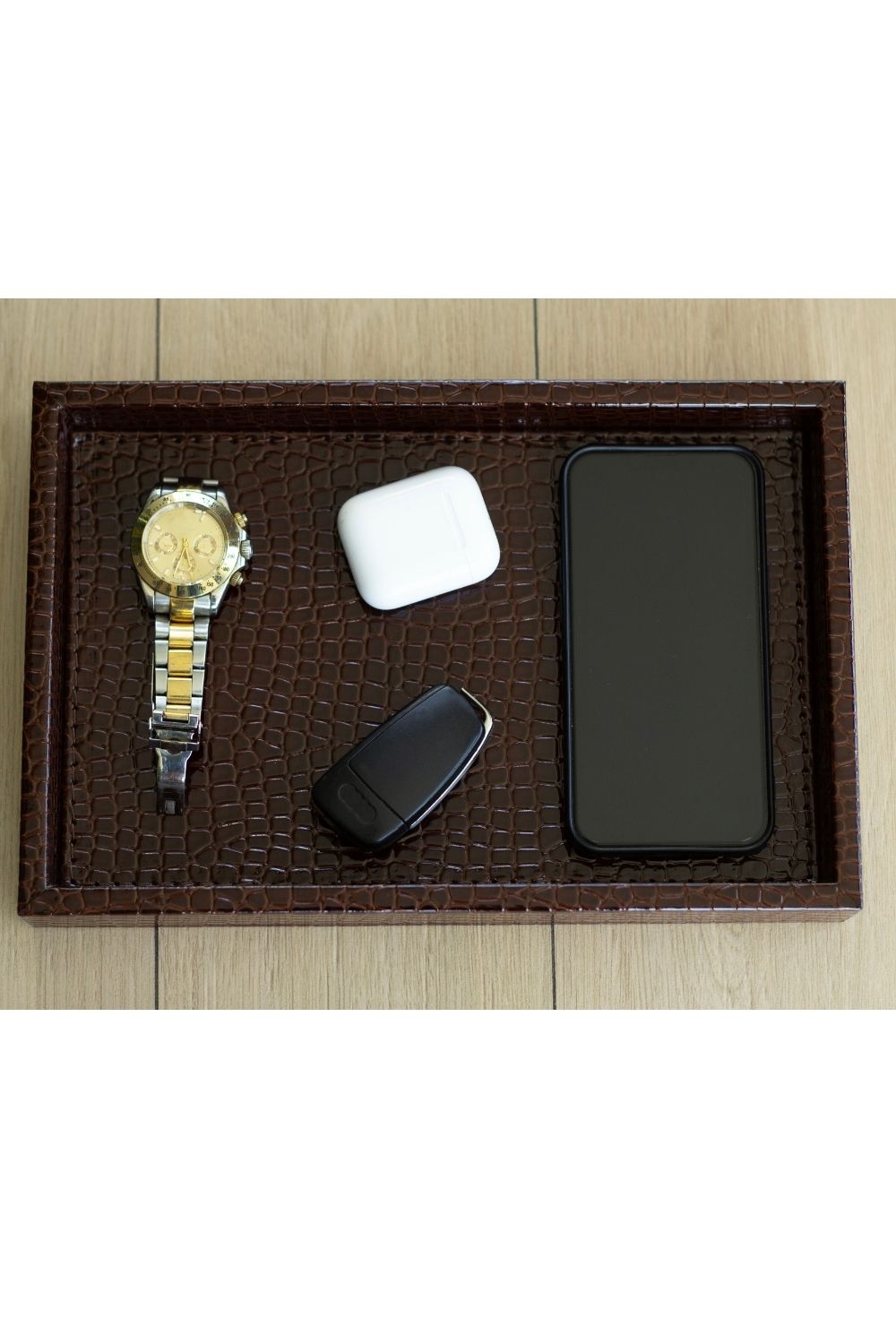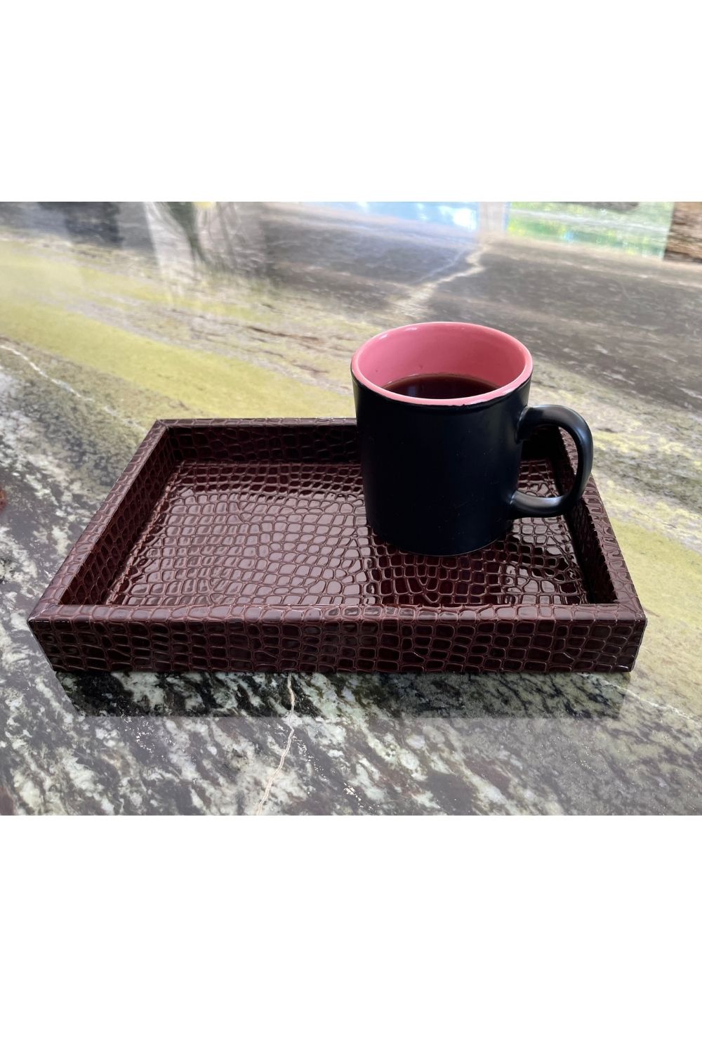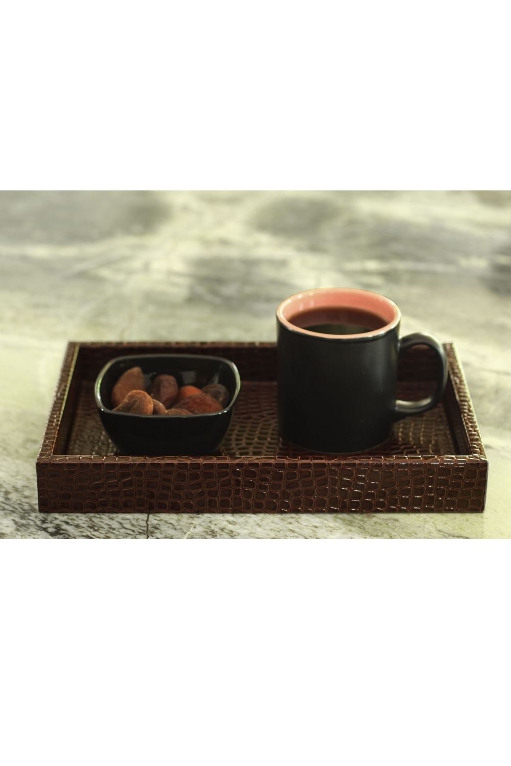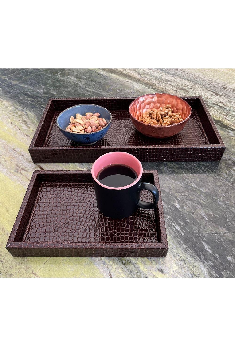 Modern Tasarım Krokodil Desenli Küçük Boy Kahverengi Suni Deri Tepsi