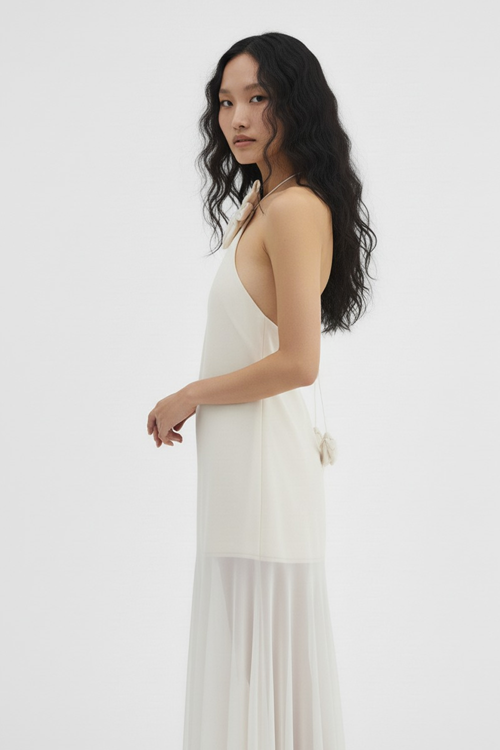 Limited Edition Magnolia Champagne - Bej Uzun Şifon Elbise