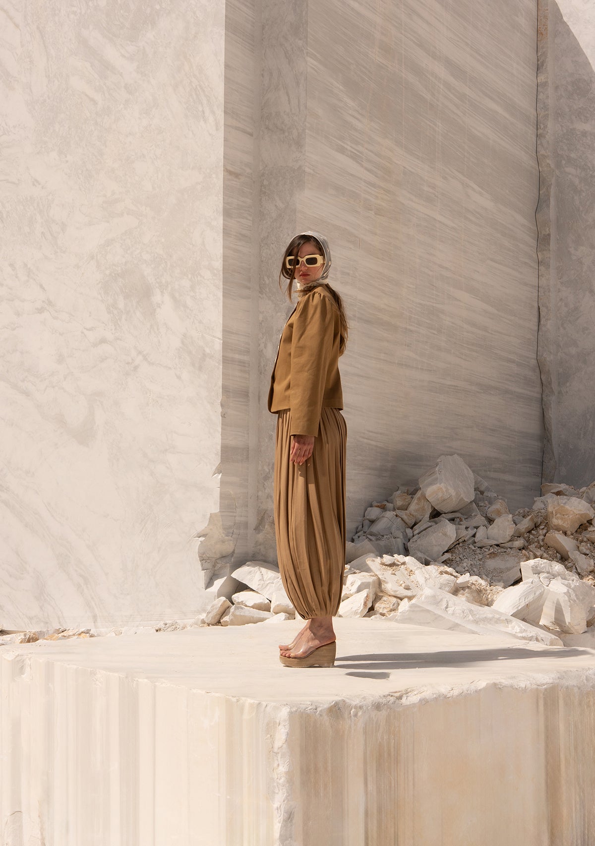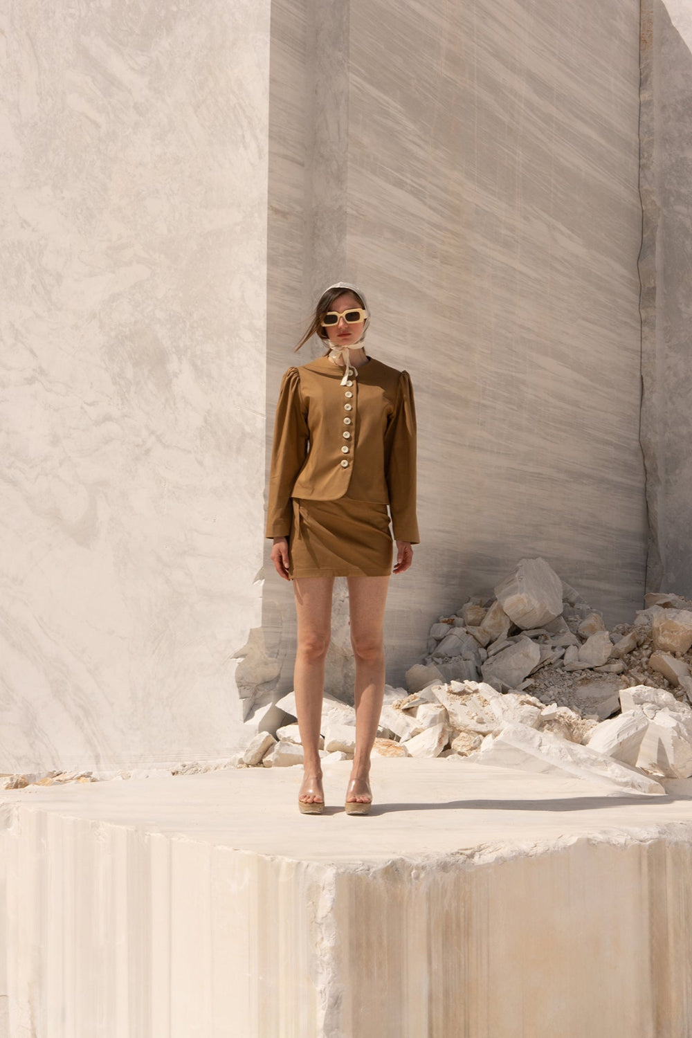 - Bej Önü Düğmeli Vatkalı Büzgülü Ceket; vatkalı omuzları ve büzgülü kollarıyla nostaljik ama güçlü bir siluet sunar.