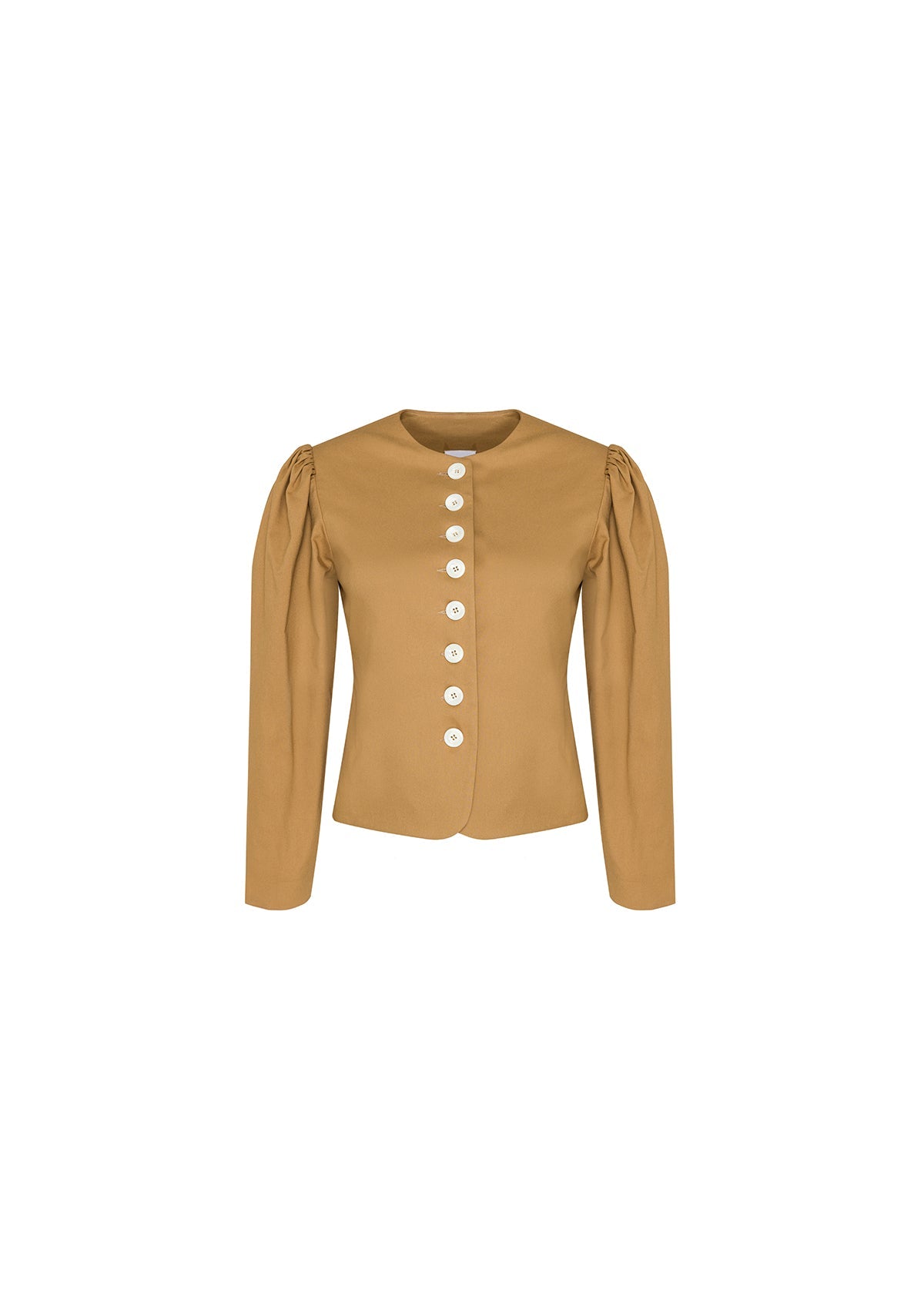 Bej Önü Düğmeli Vatkalı Büzgülü Ceket