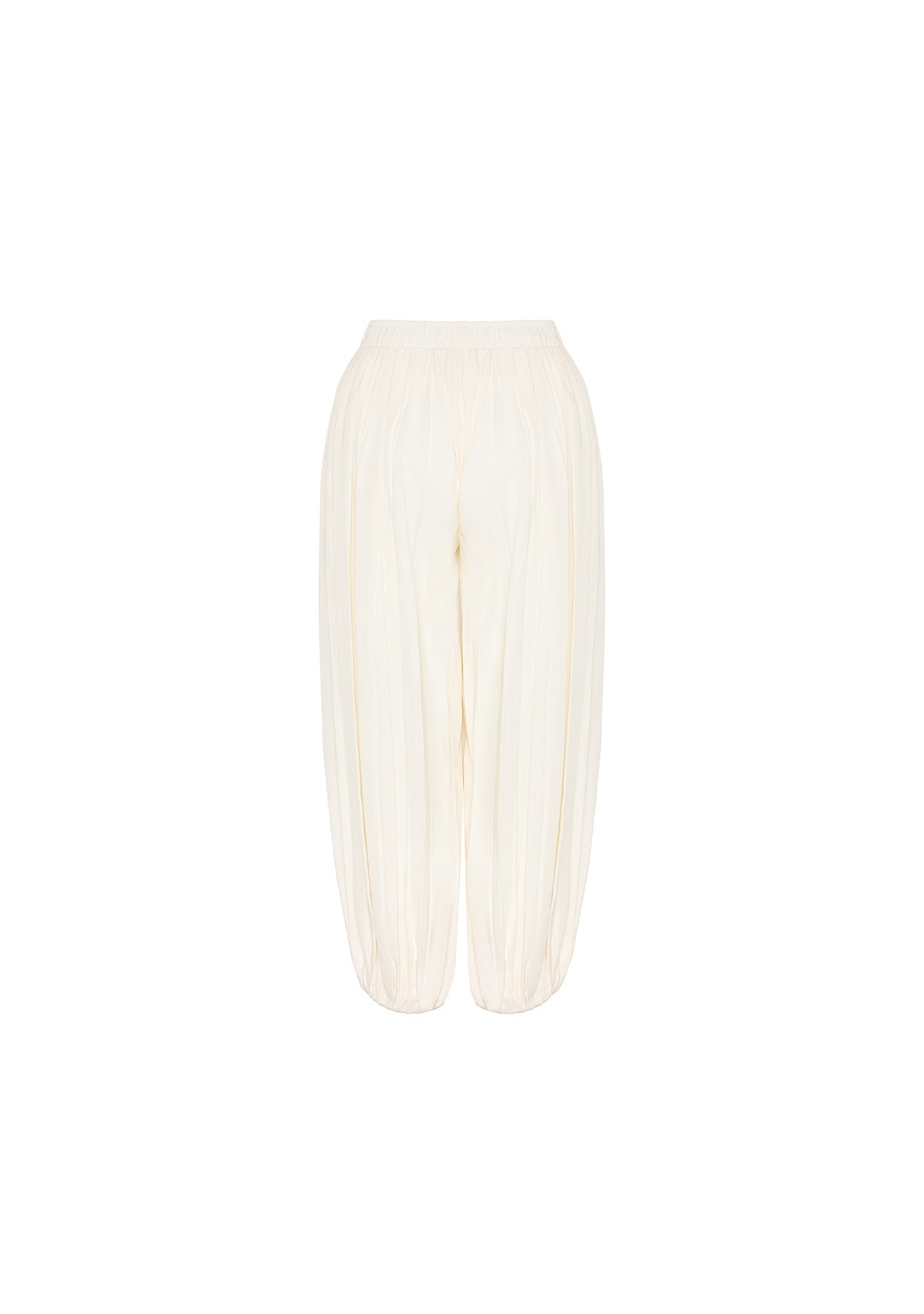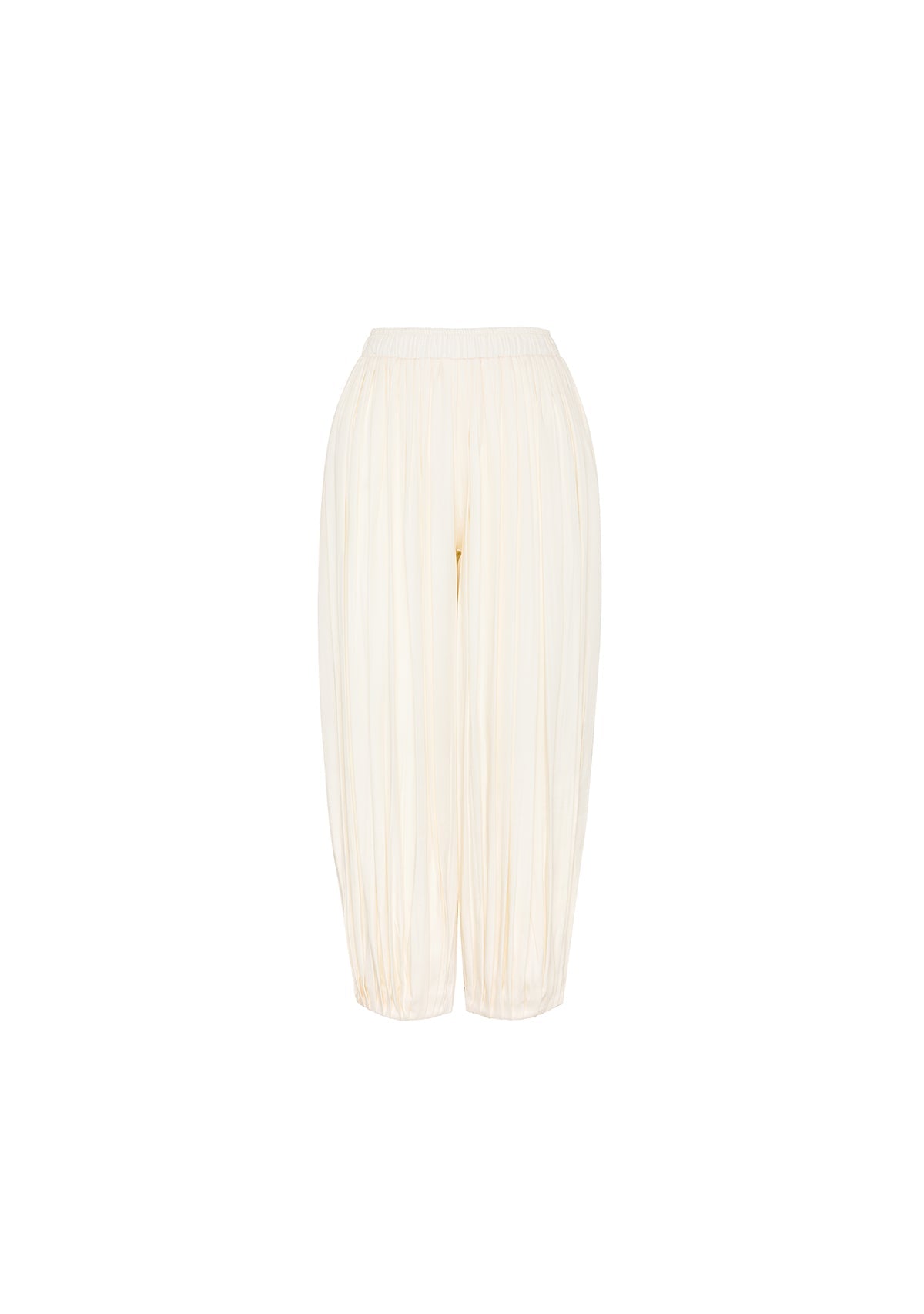 Beli Lastikli Tencel™ Krem Şalvar Pantolon