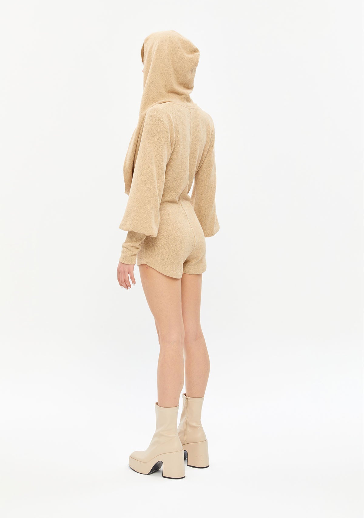 - İspanyol Paça Derin Dekolteli Tulum’un şortlu versiyonu olan Derin Dekolteli Şort Tulum yine pantolonlu versiyonunda oldu gibi derin bir dekolteye ve kapsana sahip.