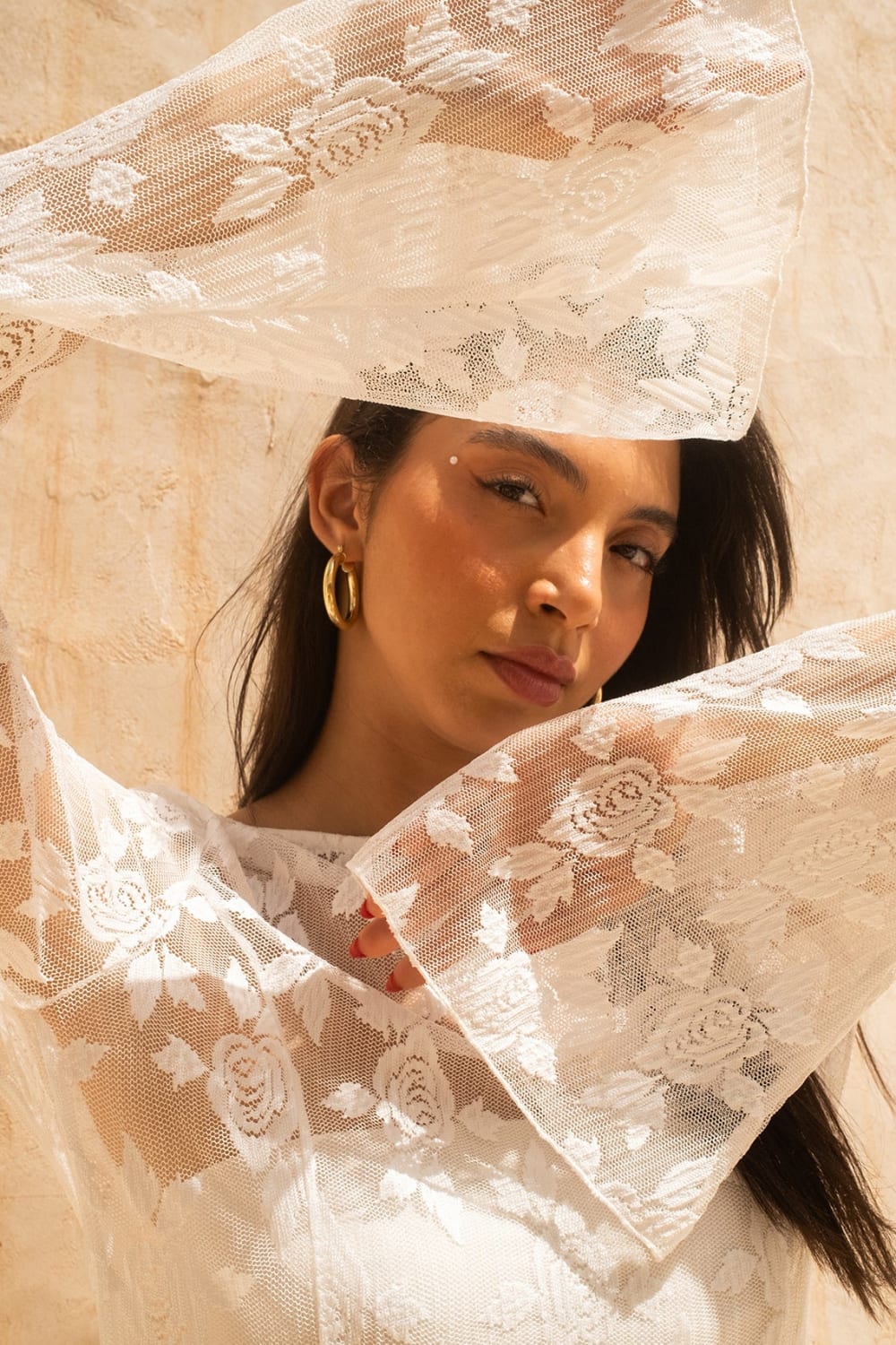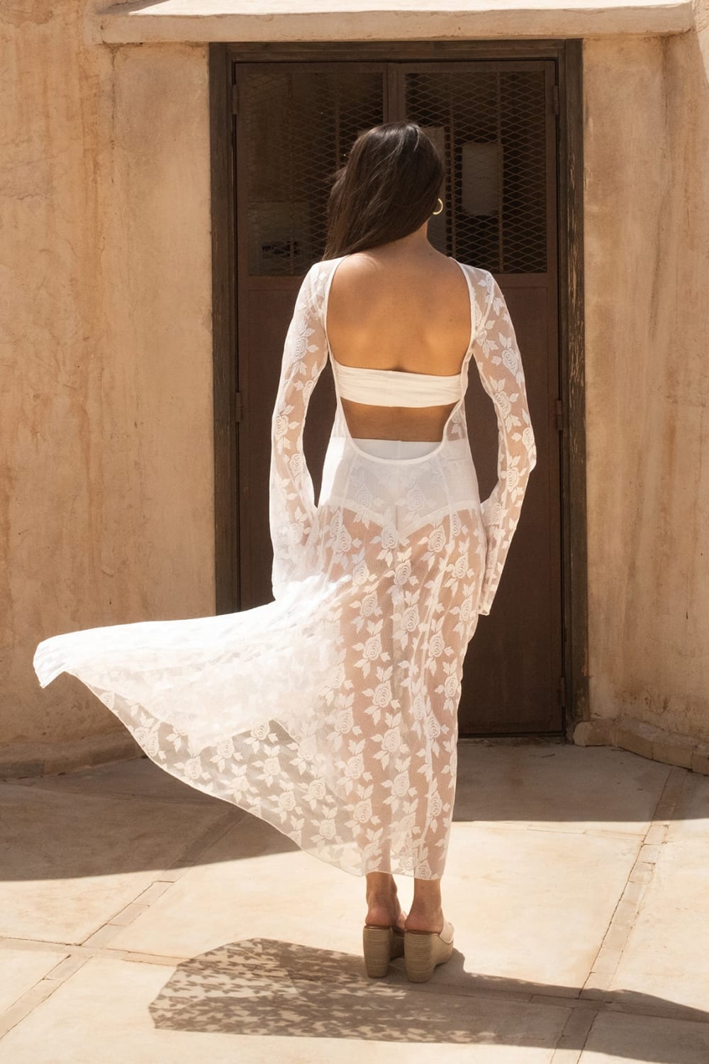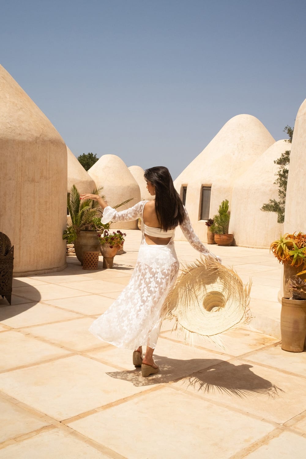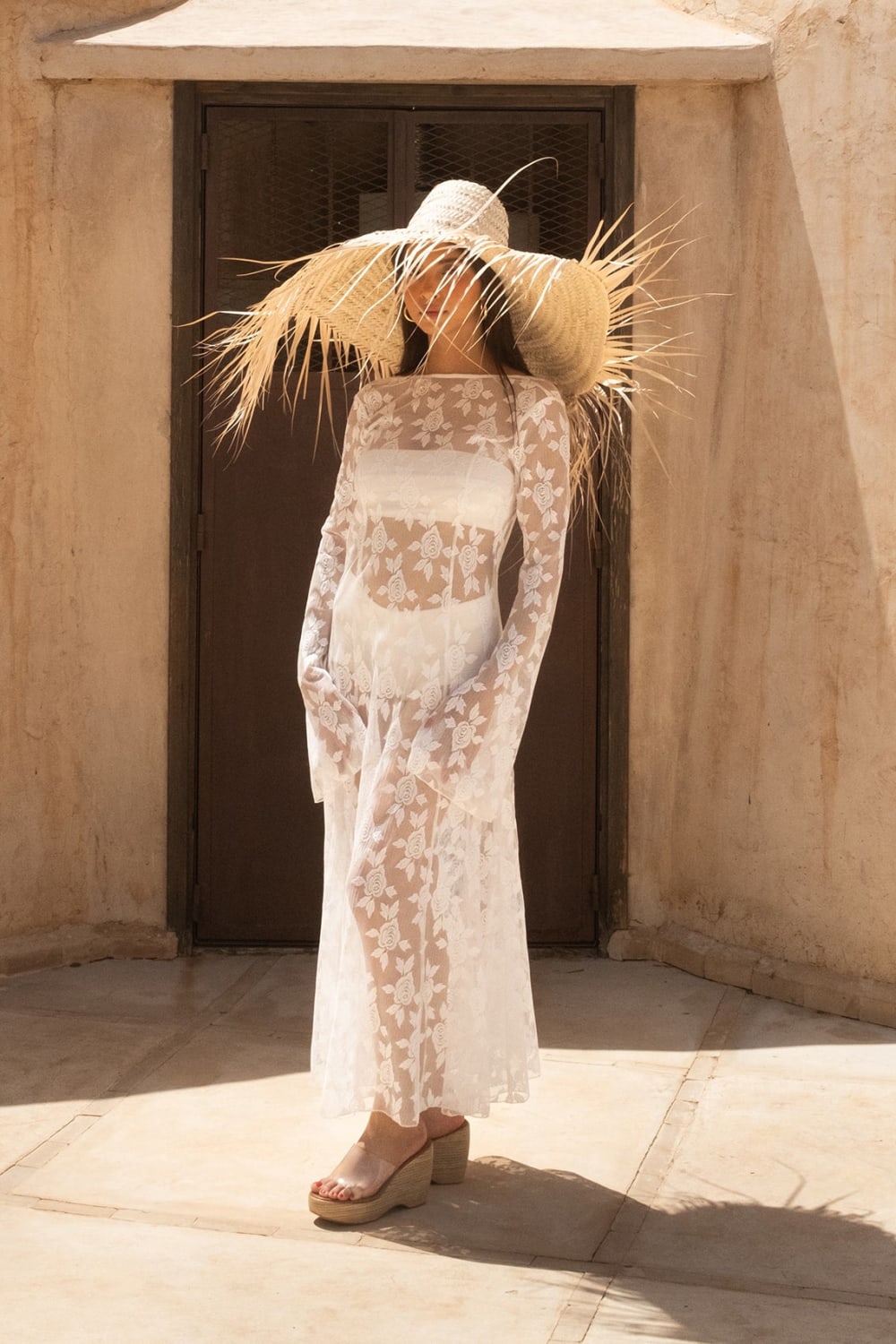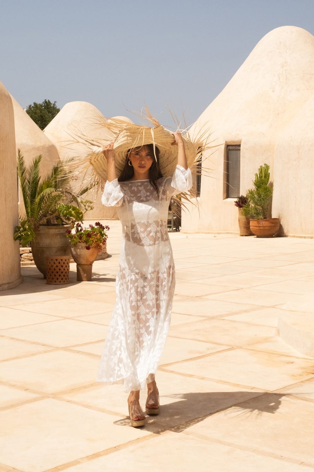 - Fas’ın ilham verici ruhuna ayak uyduran gül işlemeli ince tül elbise.