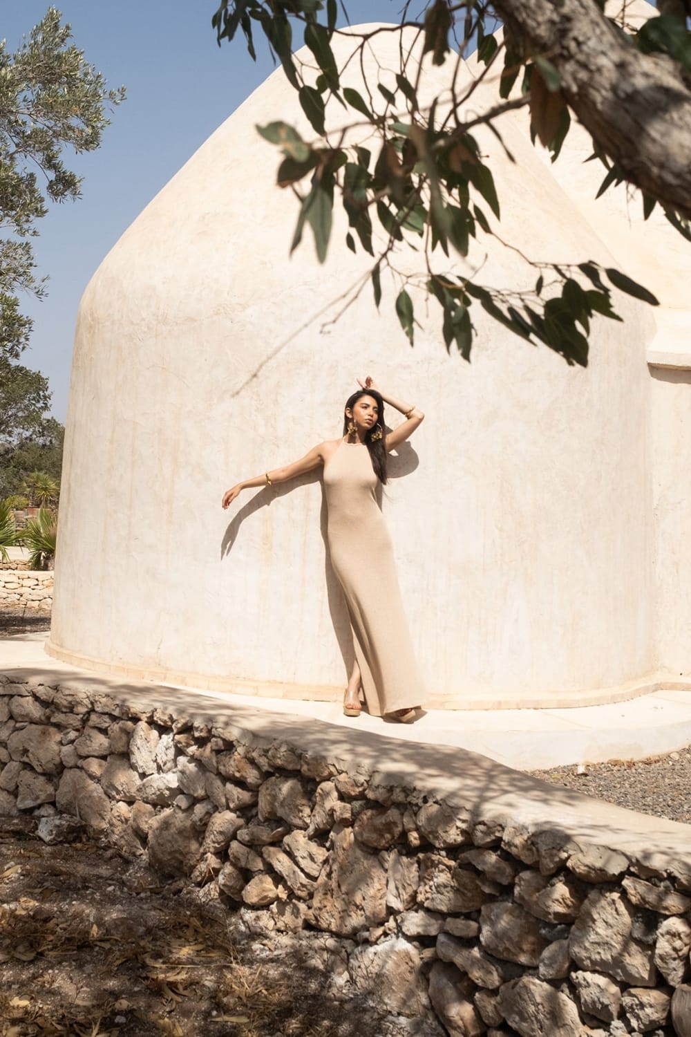 - Bileğe kadar uzun boyuyla bacaklarınızı kapatır. Arka kısmında derin bir yırtmacı bulunur ve yürümenizi kolaylaştırır. Bir tanrıça ruhuyla!
