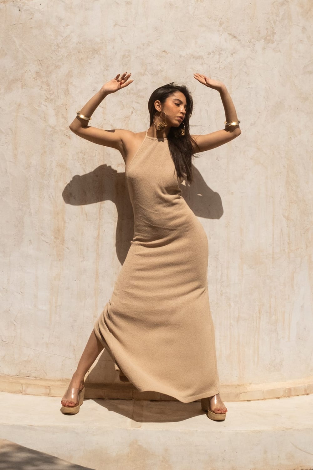 - Halter yakasıyla sırtınızı ve omuzlarınızı ortaya çıkaran Si Boyundan Bağlamalı Triko Elbise, triko kumaşıyla hatlarınızı seksi ve transparan şekilde belli eder.