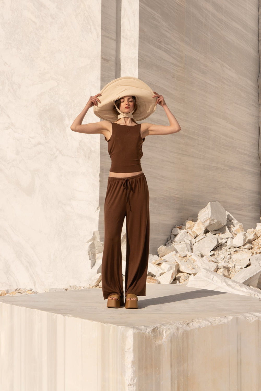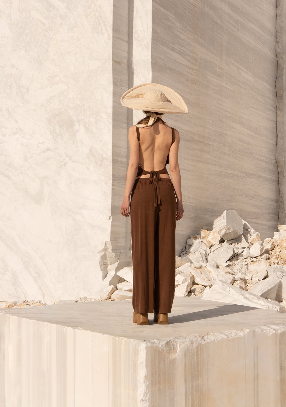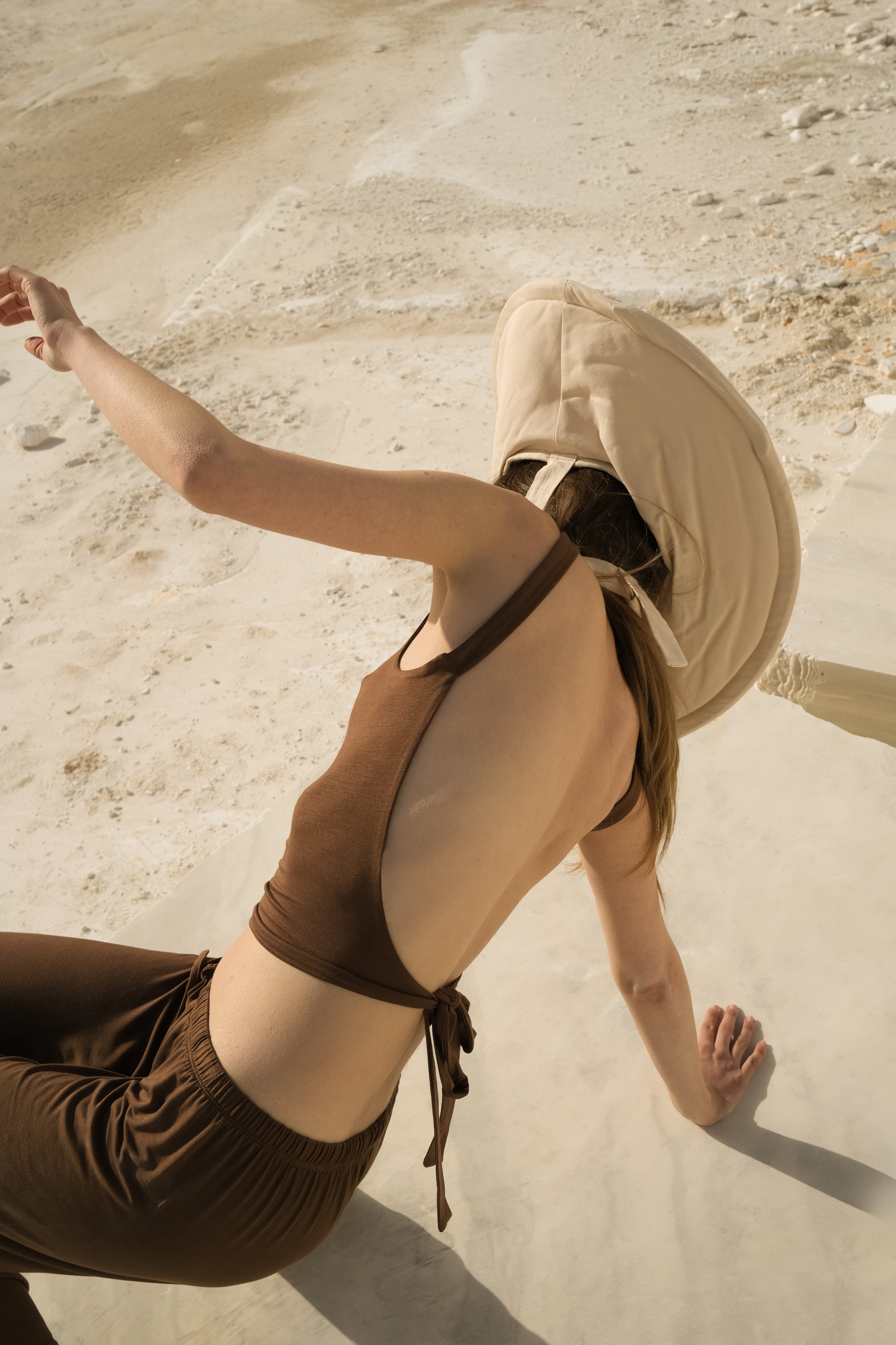 Sırtı Açık Belden Bağlamalı Kahverengi Bluz