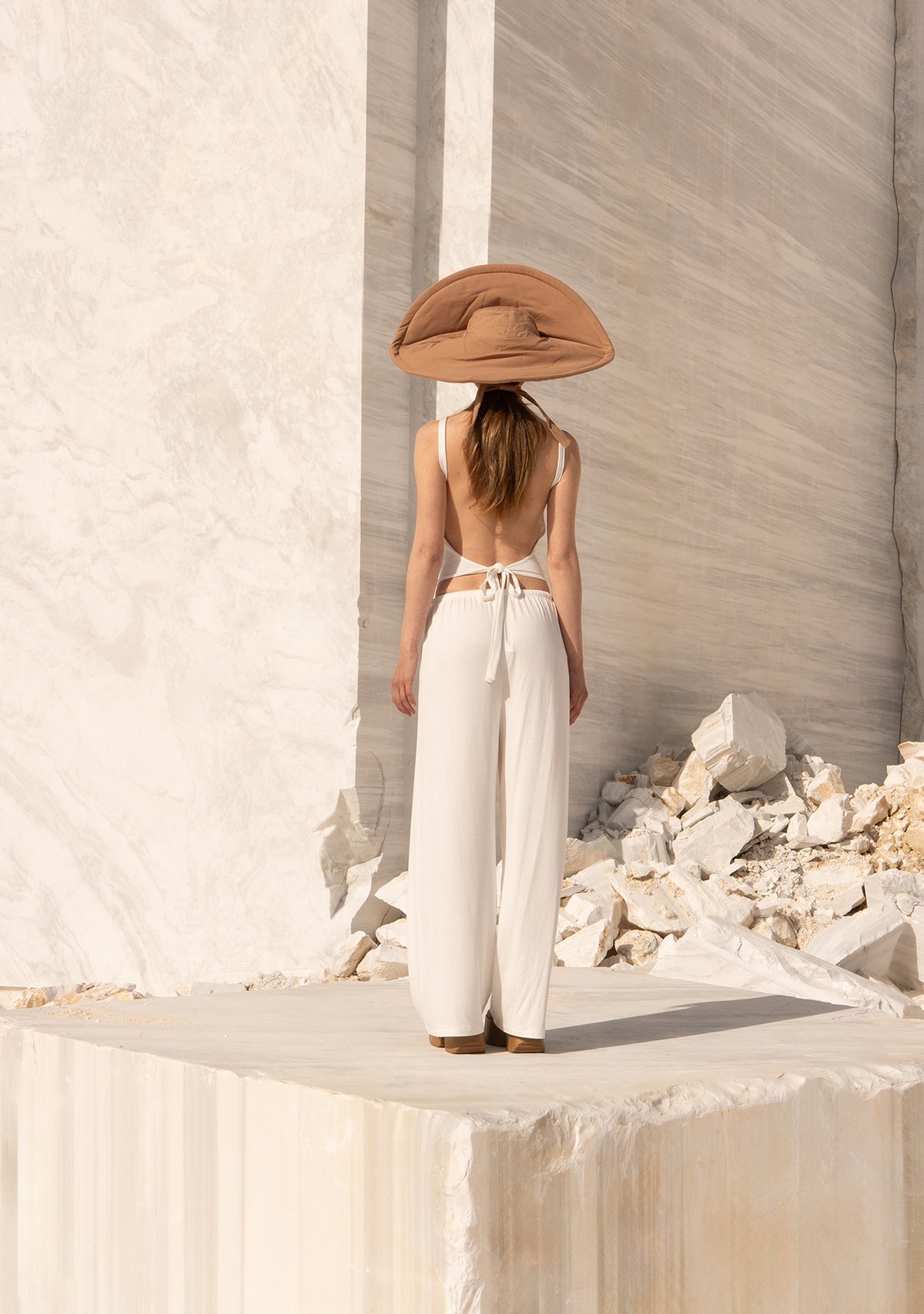 Yumuşak Dökümlü Beyaz Beli Lastikli Pantolon