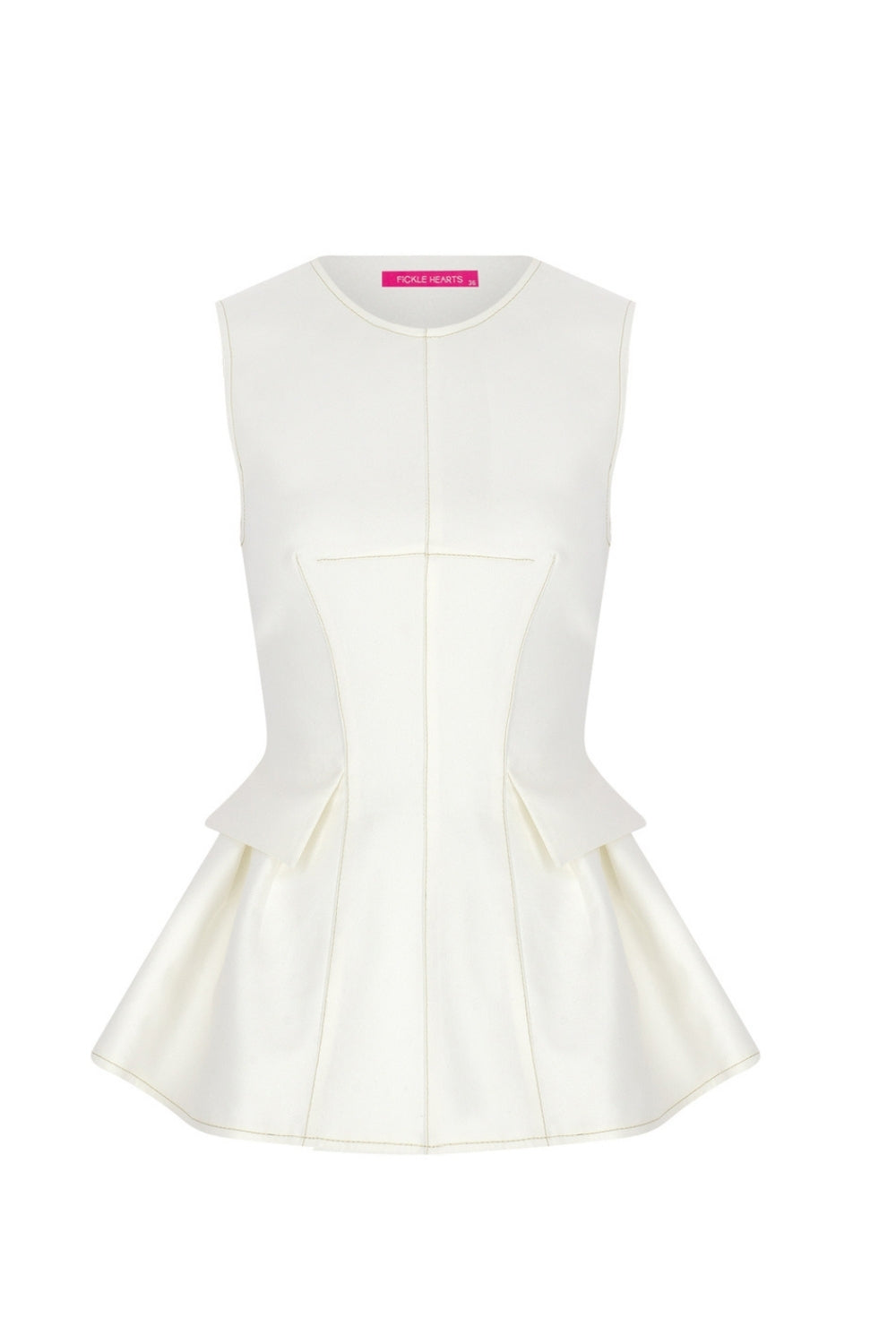 Aspen Ekru Beyaz Gabardin Peplum Top