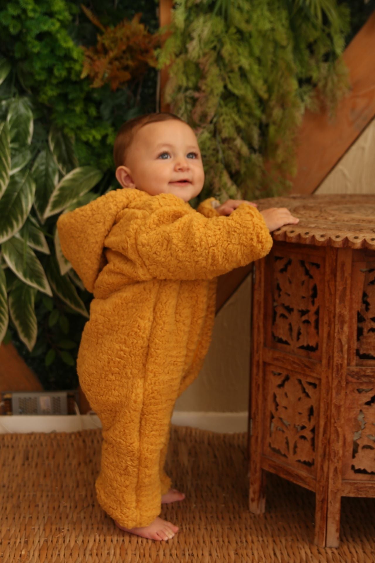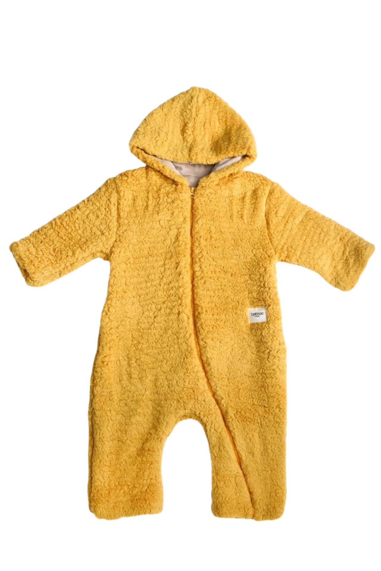 Kapüşonlu Pelüş Tulum - Safran Sarısı