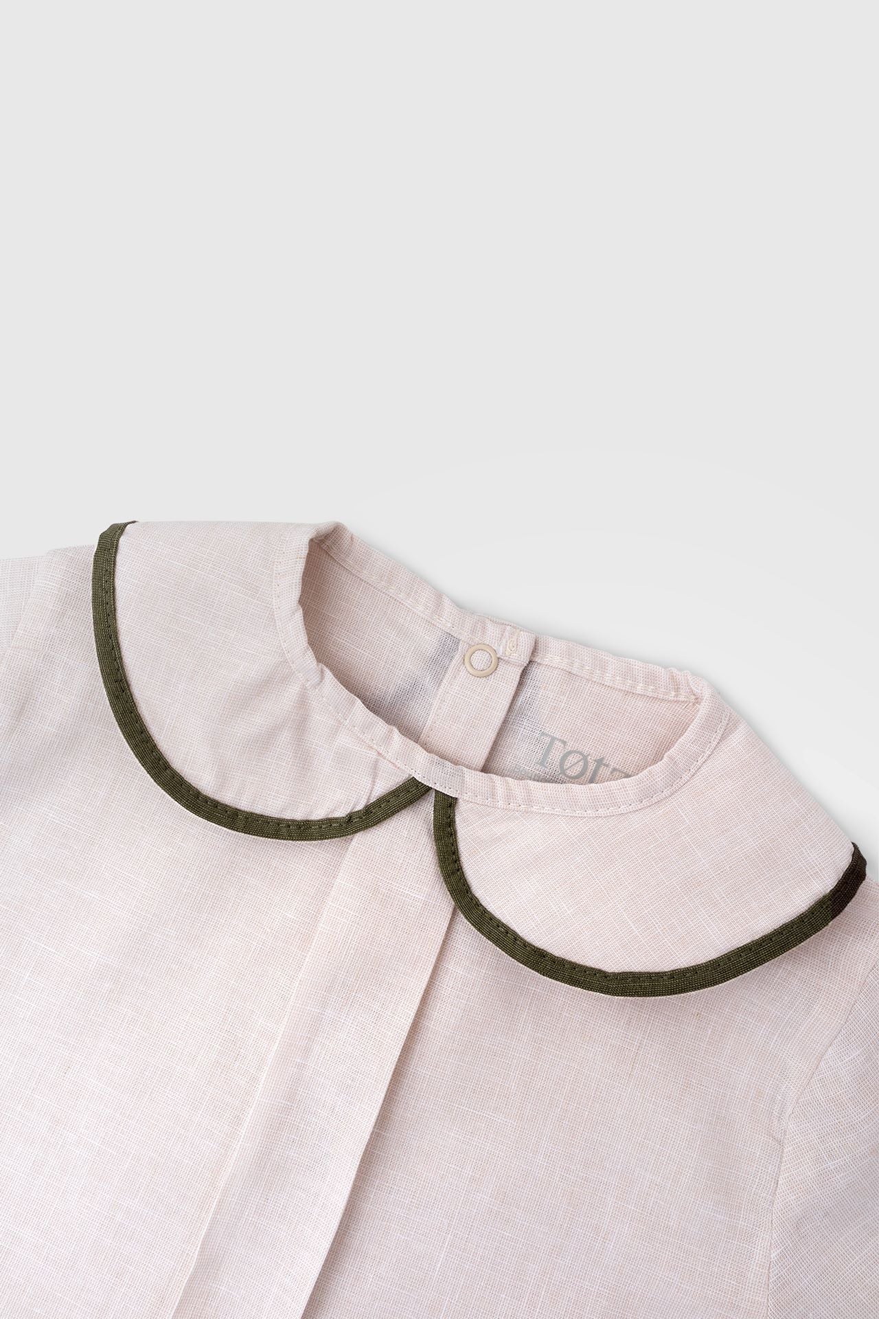 Keten Bebe Yaka Pileli Üst Fildişi