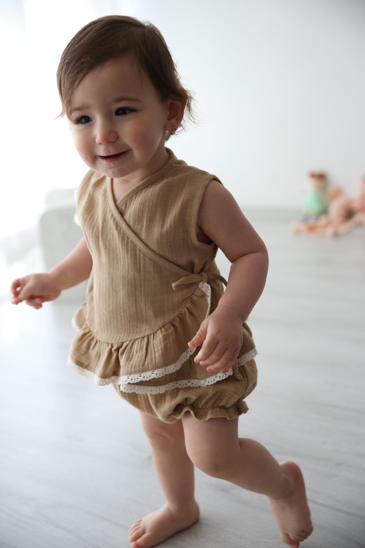 Kız bebekler için özel olarak tasarlanan bu Müslin Fırfırlı Şort, hem şıklığı hem de rahatlığı bir araya getiriyor. Saf ve nefes alabilen müslin kumaşı sayesinde bebeklerin hassas ciltleri için ideal bir seçenektir. Zamandan bağımsız tasarımıyla her sezonun modasına uyum sağlar ve bebeğinizin stilini öne çıkarır. Bu özel şort, minik prenseslerin her anının konforlu ve zarif geçmesi için tasarlandı.