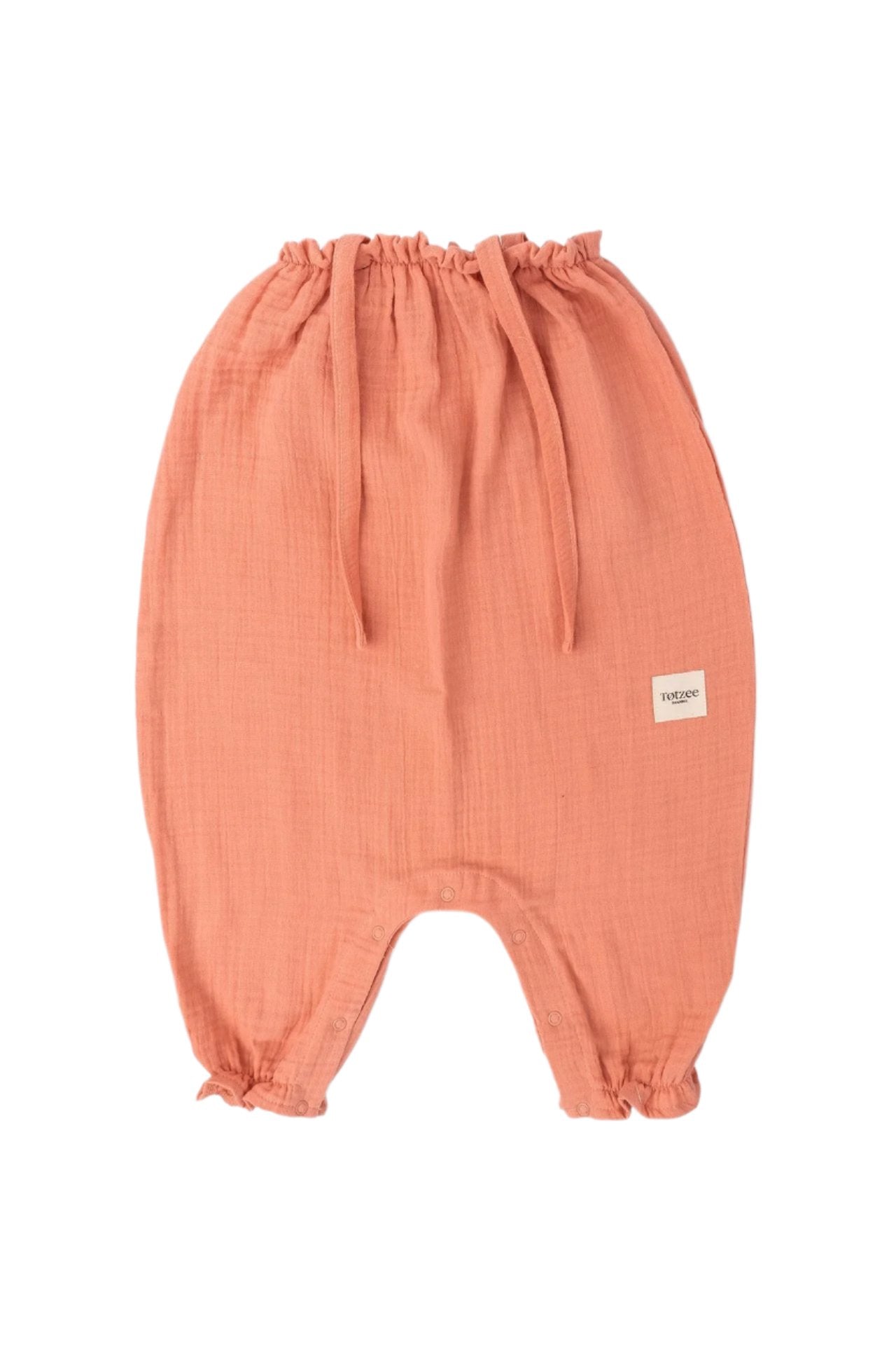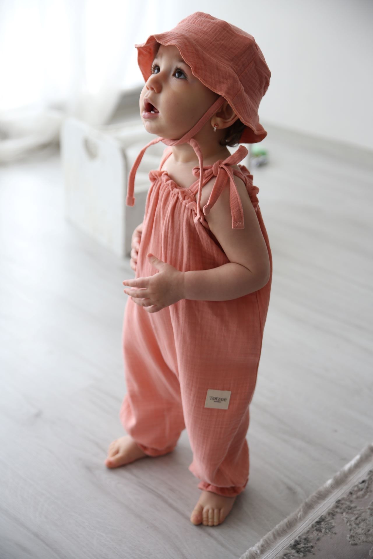 Müslin İP Askılı Balon Tulum Mercan Rengi