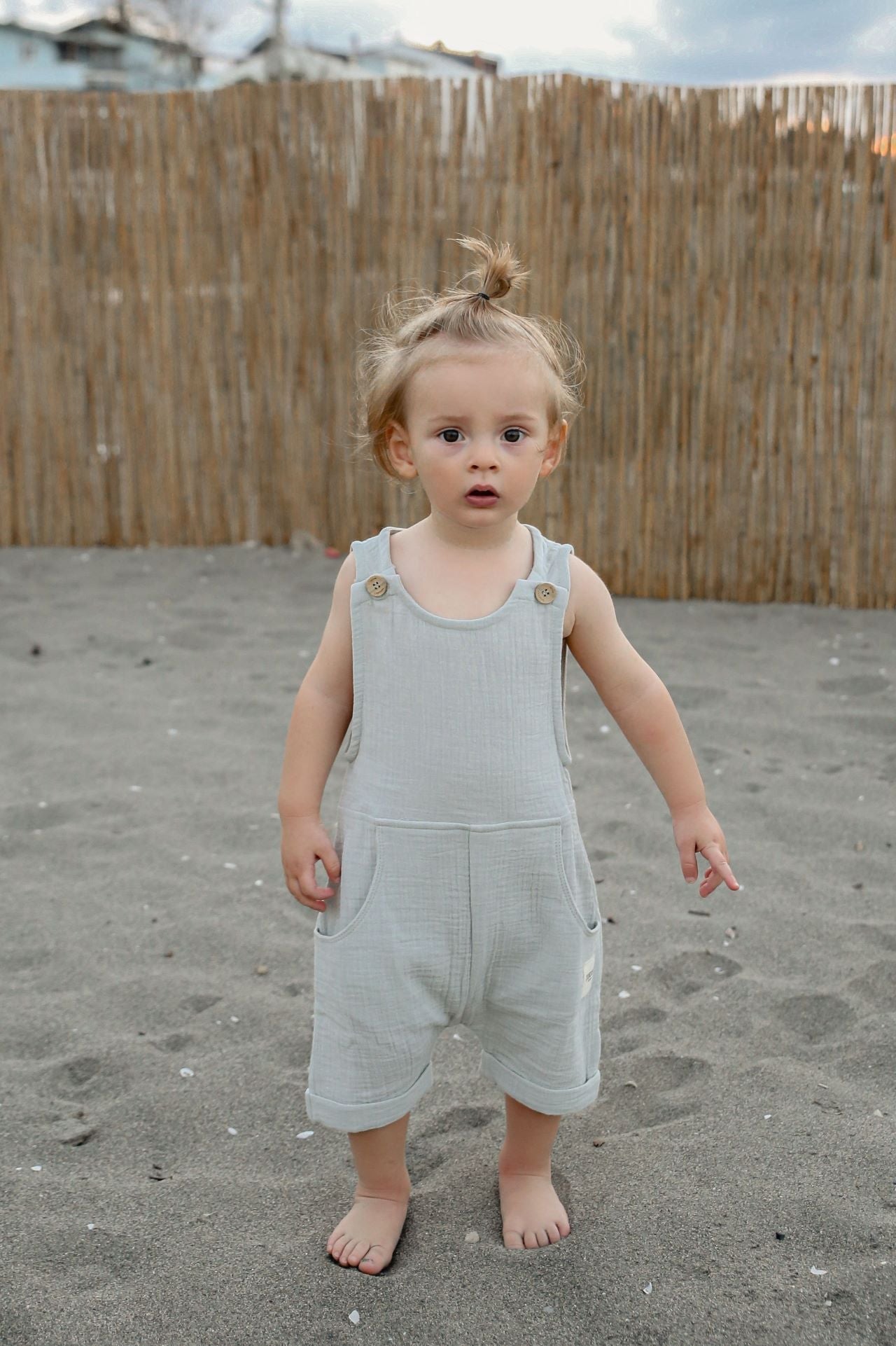 Müslin Yandan Cepli Salopet, bebeklerin rahatlığını ve şıklığını bir araya getiriyor. Bebekler için tasarlanan bu özel bahçivan pantolon, müslin kumaşının hafifliği ve nefes alabilirliği sayesinde, mevsim fark etmeksizin, bebeğinizin cildiyle dost. Yandan cepleri, hem kullanışlı bir detay oluşturuyor hem de modern bir dokunuş katıyor.