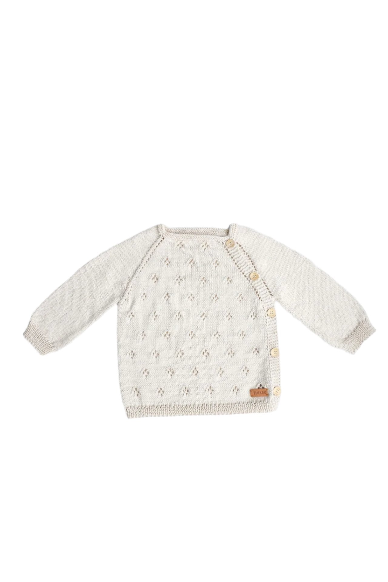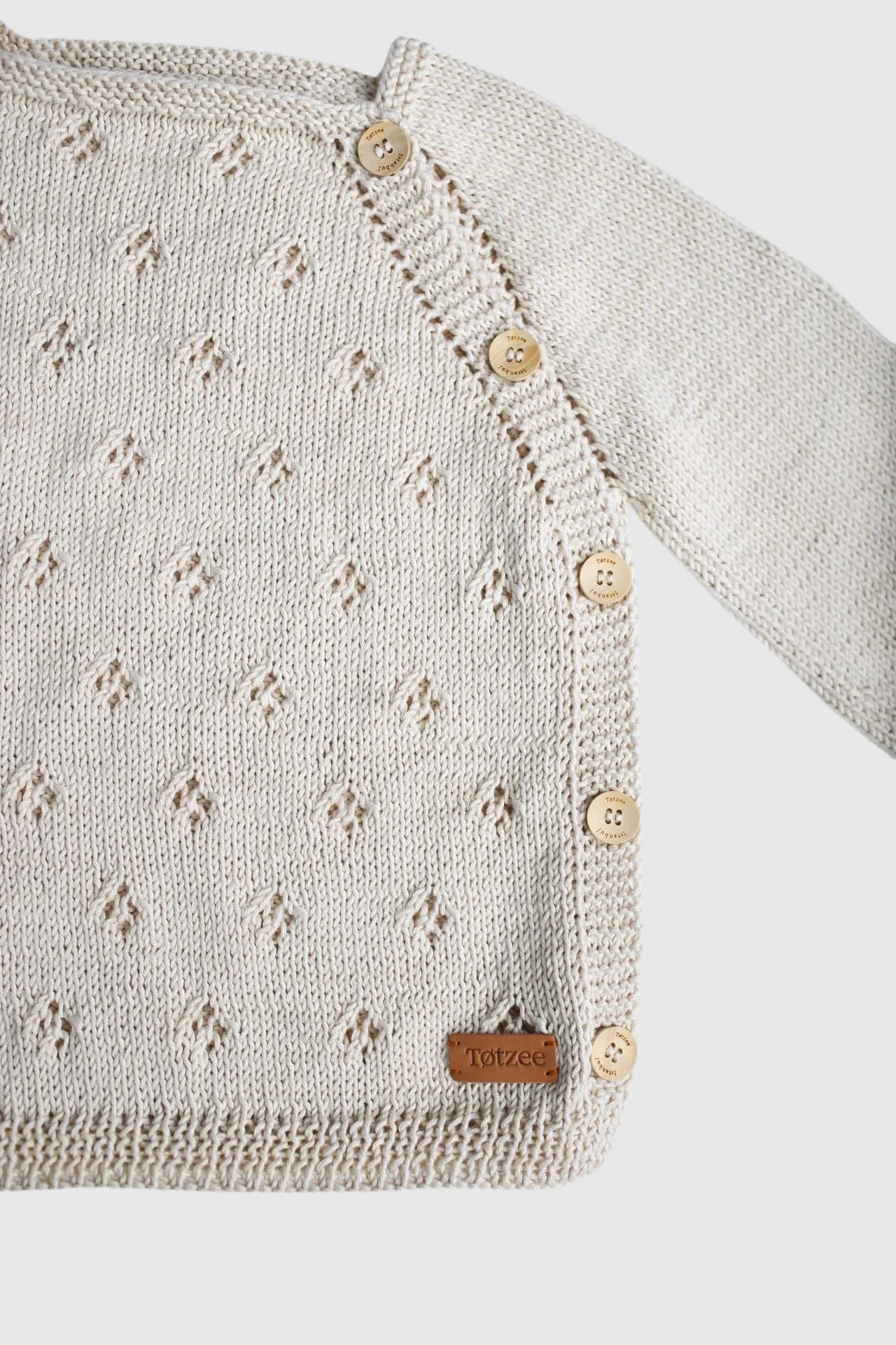 Organik El Örgüsü Yandan Düğmeli Hırka Antik Bej
