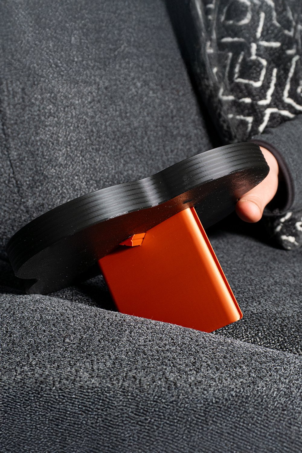 Placia Devrilmez Koltuk Tepsisi, koltuk minderleri arasına sıkışarak sabitlenen ve devrilmeyi önleyen bir tepsidir. Orta ve yan sehpa kalabalığından kurtulmak isteyenler için tasarlanmıştır, böylece oturma odası düzeni daha düzenli hale gelir.