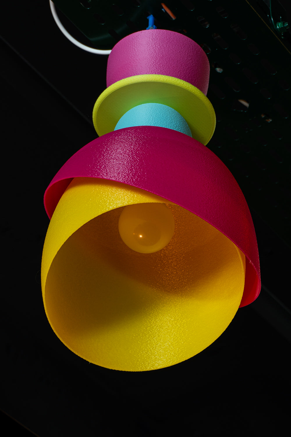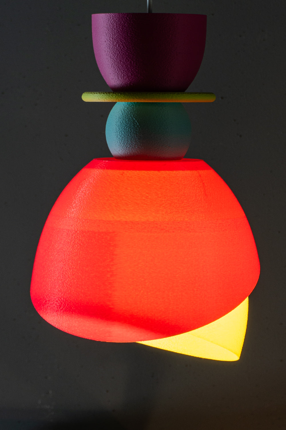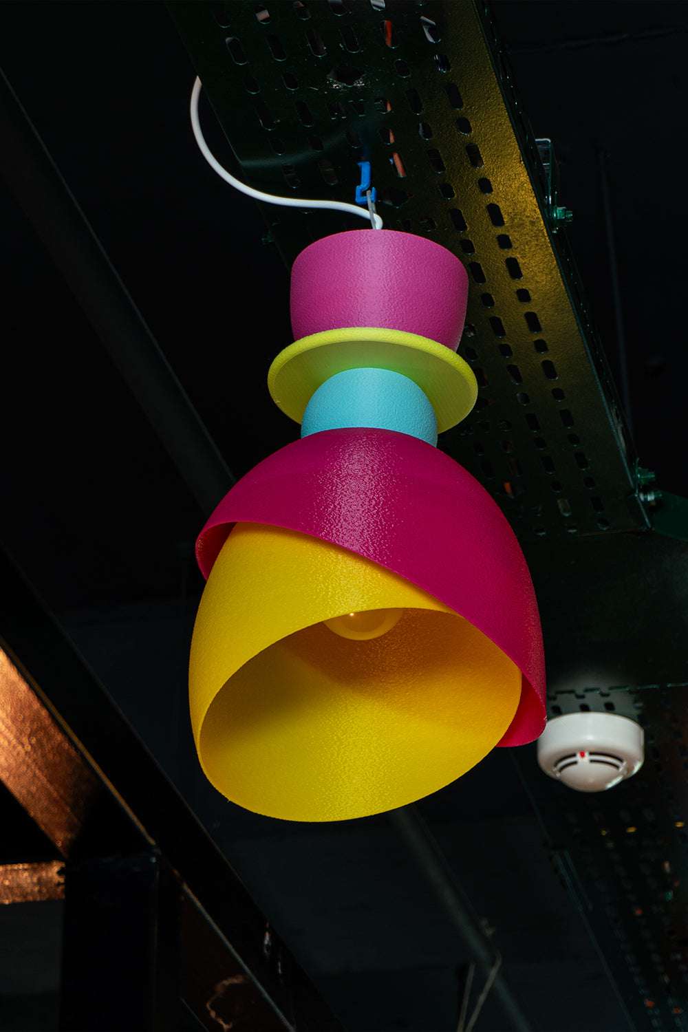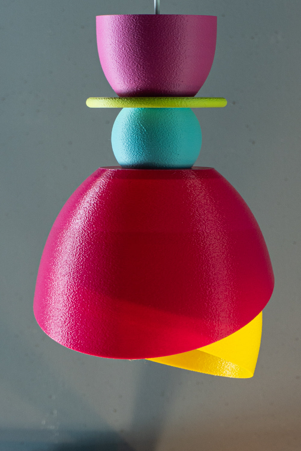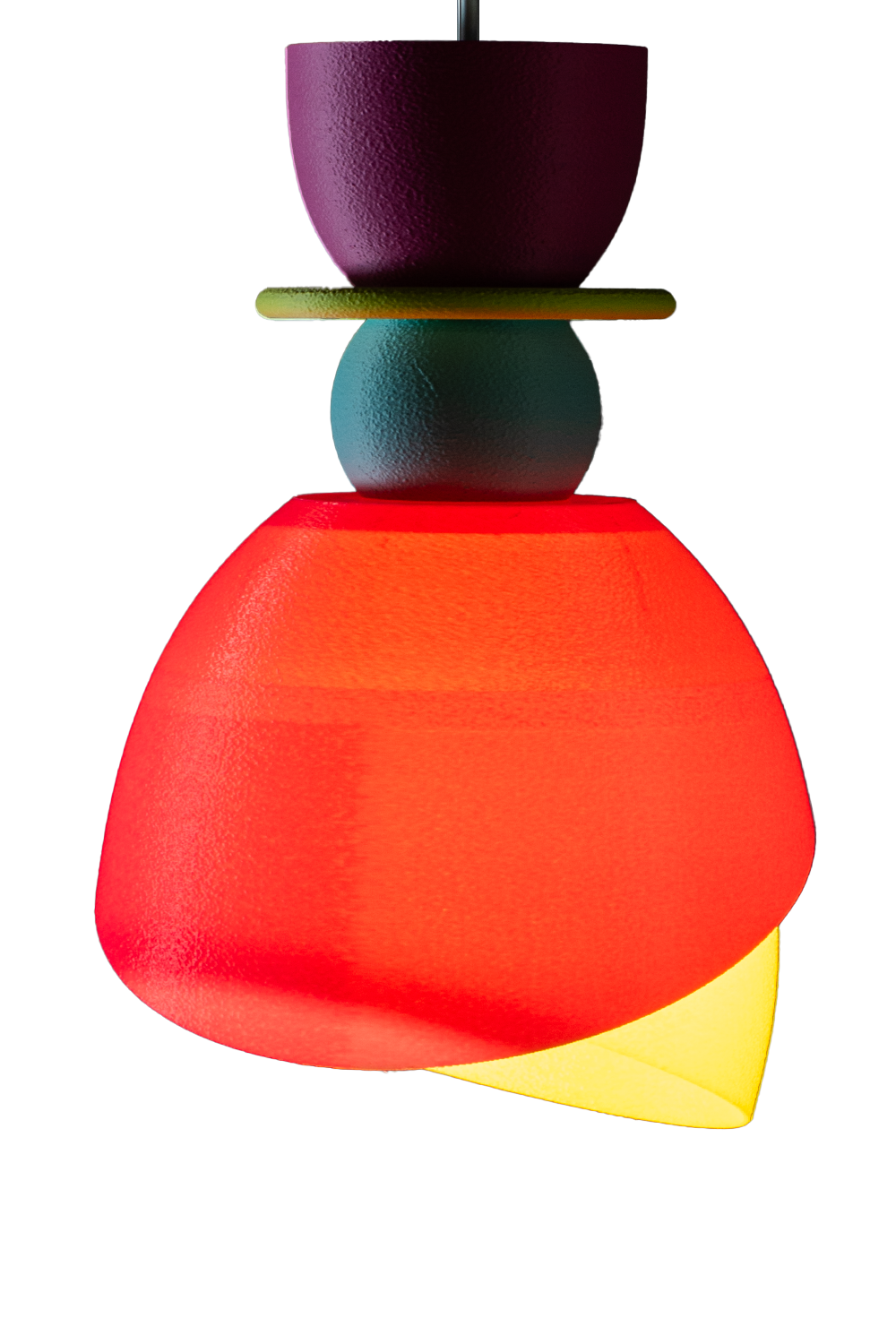 Prisma II avize, geometrik şekillerin üst üste gelmesiyle oluşan renkli ve dikkat çekici formuyla mekânınıza pop-art tarzında bir enerji katar. Açılı yuvarlak hatları ışığı yumuşak bir şekilde yayarken, parlak ve yarı geçirgen renk detayları bulunduğu ortama canlılık ve yumuşak bir ışık kazandırır.