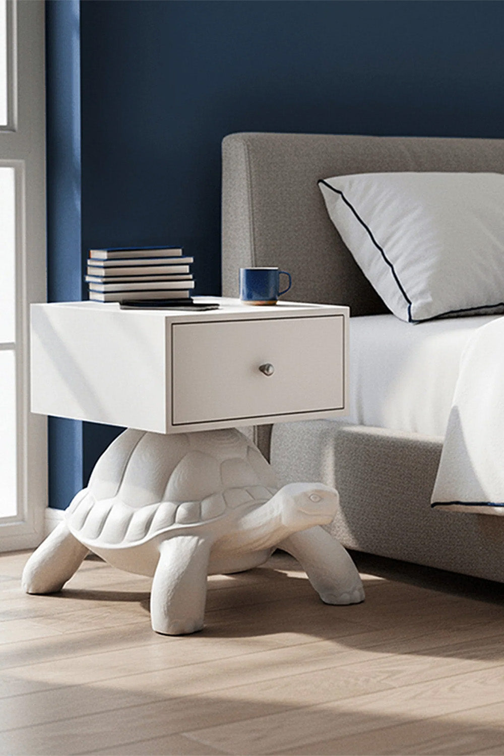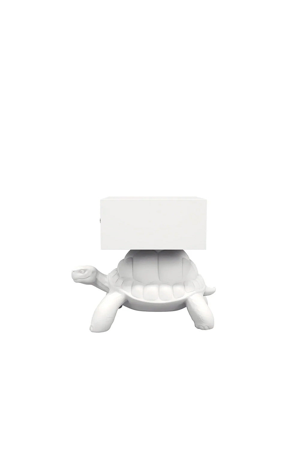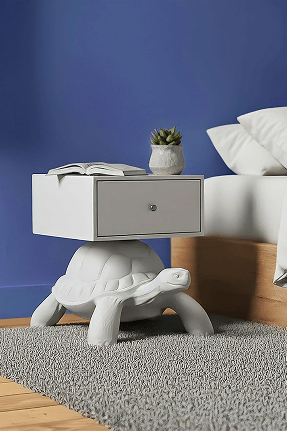 Qeeboo’nun ikonik Turtle Carry koleksiyonuna eğlenceli bir yorum daha: Turtle Carry Komodin. Sırtında küçük bir çekmeceli sehpa taşıyan kaplumbağa formu, mizahi tasarım anlayışını işlevsellikle buluşturuyor. Komodin veya yan sehpa olarak kullanılabilen bu parça, yatak odalarına hem karakter hem de pratiklik katıyor.