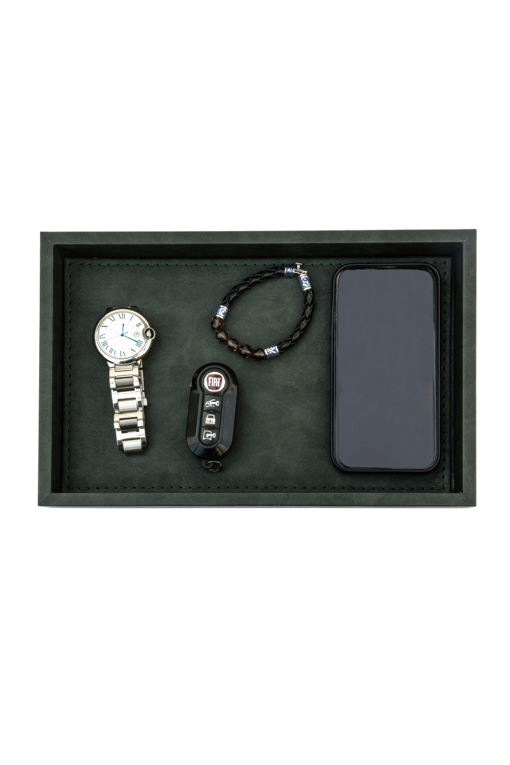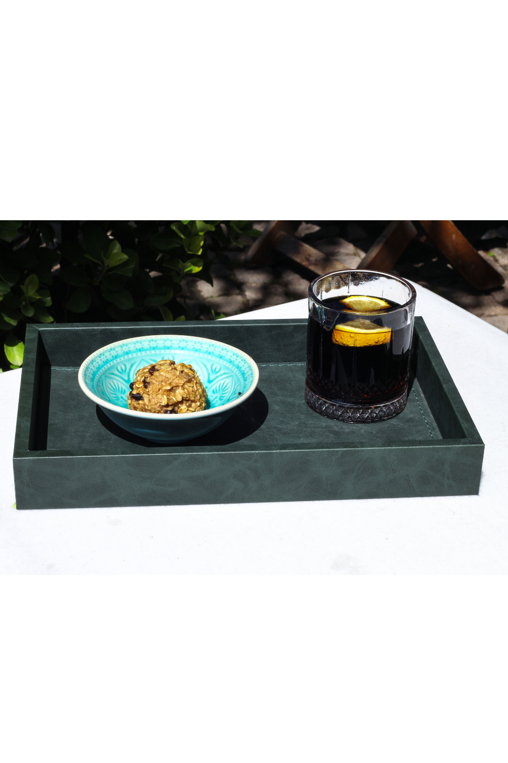 Orta Boy Koyu Yeşil Suni Deri Tepsi