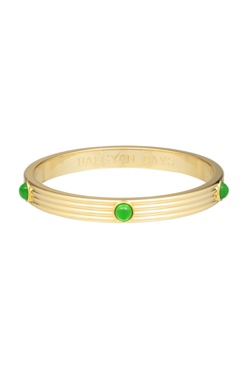 Ribbed Cabochon - Emerald - Gold - Bangle