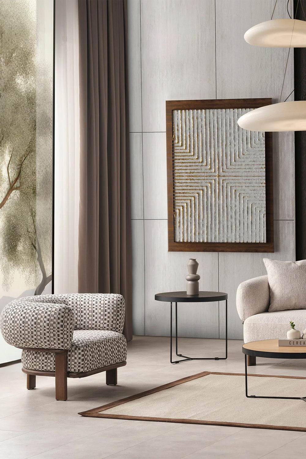Rahatlığı ve zarafeti buluşturan Klara Berjer, yaşam alanınıza sıcak bir dokunuş katıyor. İskeletindeki ahşap detaylar, doğal bir estetik sunarken, keten pamuk karışımlı kumaşıyla da konforu en üst seviyeye çıkarıyor. Klara, modern ve minimalist bir tasarımla evinize huzur ve şıklık getiriyor.