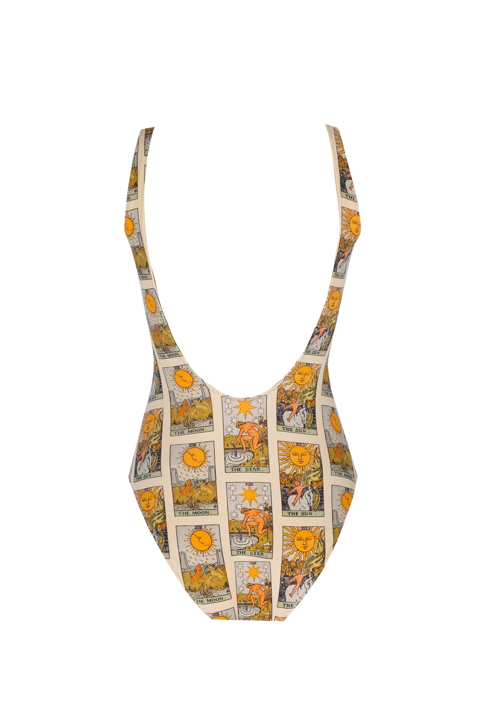 Tıpkı WAYT'ın çeşitli kimliklerden oluşan topluluğu gibi her kartın bir karakteri ve duyguyu temsil ettiği tarot kartları, geri dönüştürülmüş kumaştan ürettiğimiz mayo koleksiyonumuzun esin kaynaklarından. Mistik uzay temasıyla kehanete göz atıyoruz ve falımızda çıkacak kartları seçiyoruz.