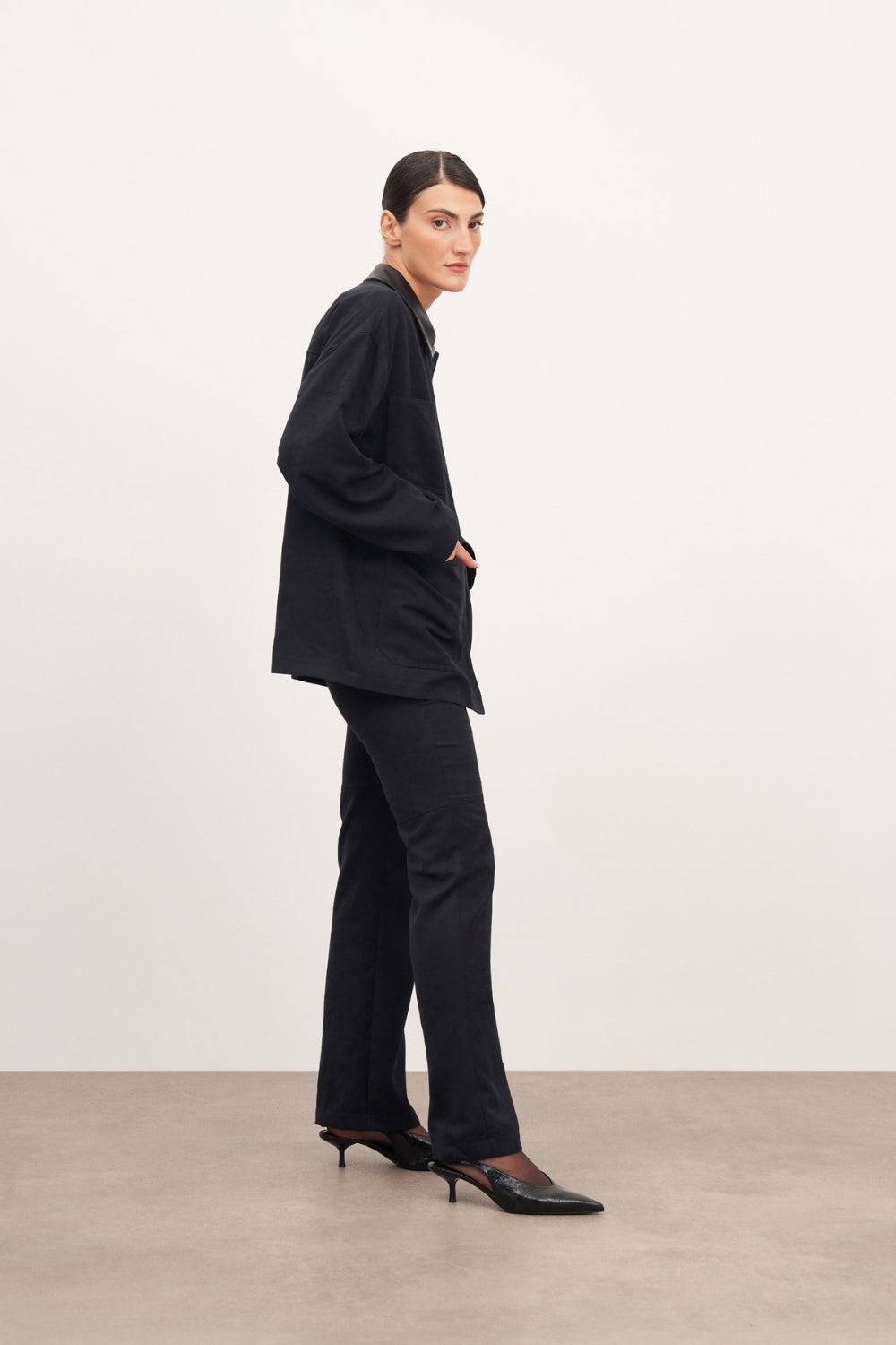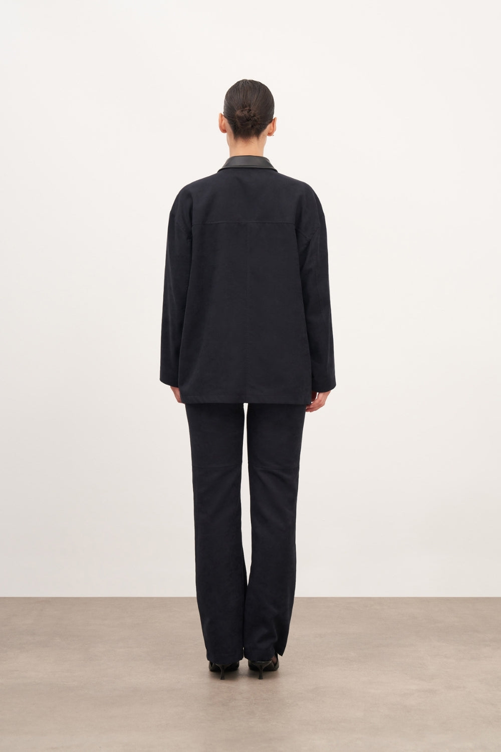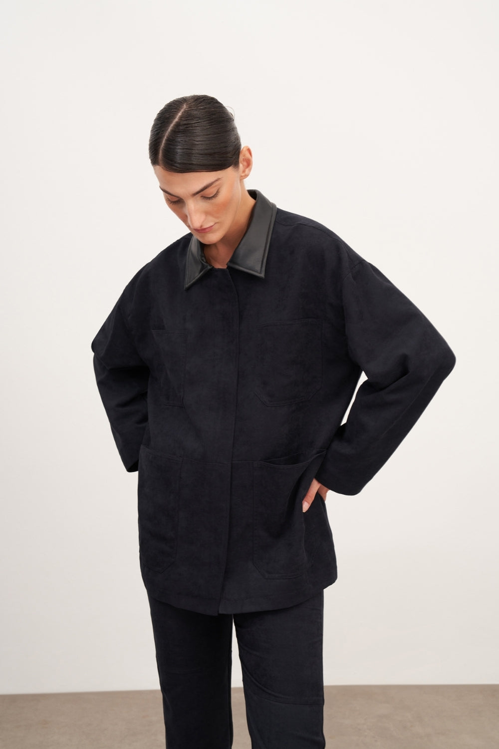 Lacivert Süet Deri Ve Cep Detaylı Ceket