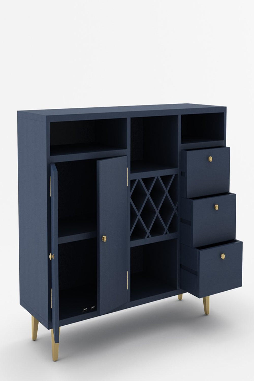 Finesse Büfe, modern ve zamansız şıklığı bir araya getiren zarif bir tasarımdır. Tamamen el işçiliği ile üretilen bu büfe, yüksek kaliteli malzemeler kullanılarak özenle tasarlanmıştır. Mekanınıza sofistike bir dokunuş katarken, zarif detayları ile her dekorasyon stiline uyum sağlar. Sergilemek istediğiniz dekor öğelerinizi yerleştirmek için üstte cömert bir alan sunar. Depolama sorunlarınızı çözmek için ergonomik olarak tasarlanmış olan bu büfe, mutfak eşyalarınızın ve aksesuarlarınızın düzenlenmesi için üç adet çekmece ve dört adet açık rafa sahiptir. İki kapaklı dolabında ekstra depolama alanı ve şişelerinizi orta bölümünde saklamak için yaratıcı bir çözüm bulacaksınız. Zarif bir görünüm sergileyen Finesse Büfenin koyu tonuyla kontrast oluşturan görsel olarak çarpıcı pirinç düğmelerle süslenmiştir. Benzer şekilde, rustik pirinç tonlu metal ayaklar bu geleneksel büfeyi zamansız bir ilgi odağı haline getirir.