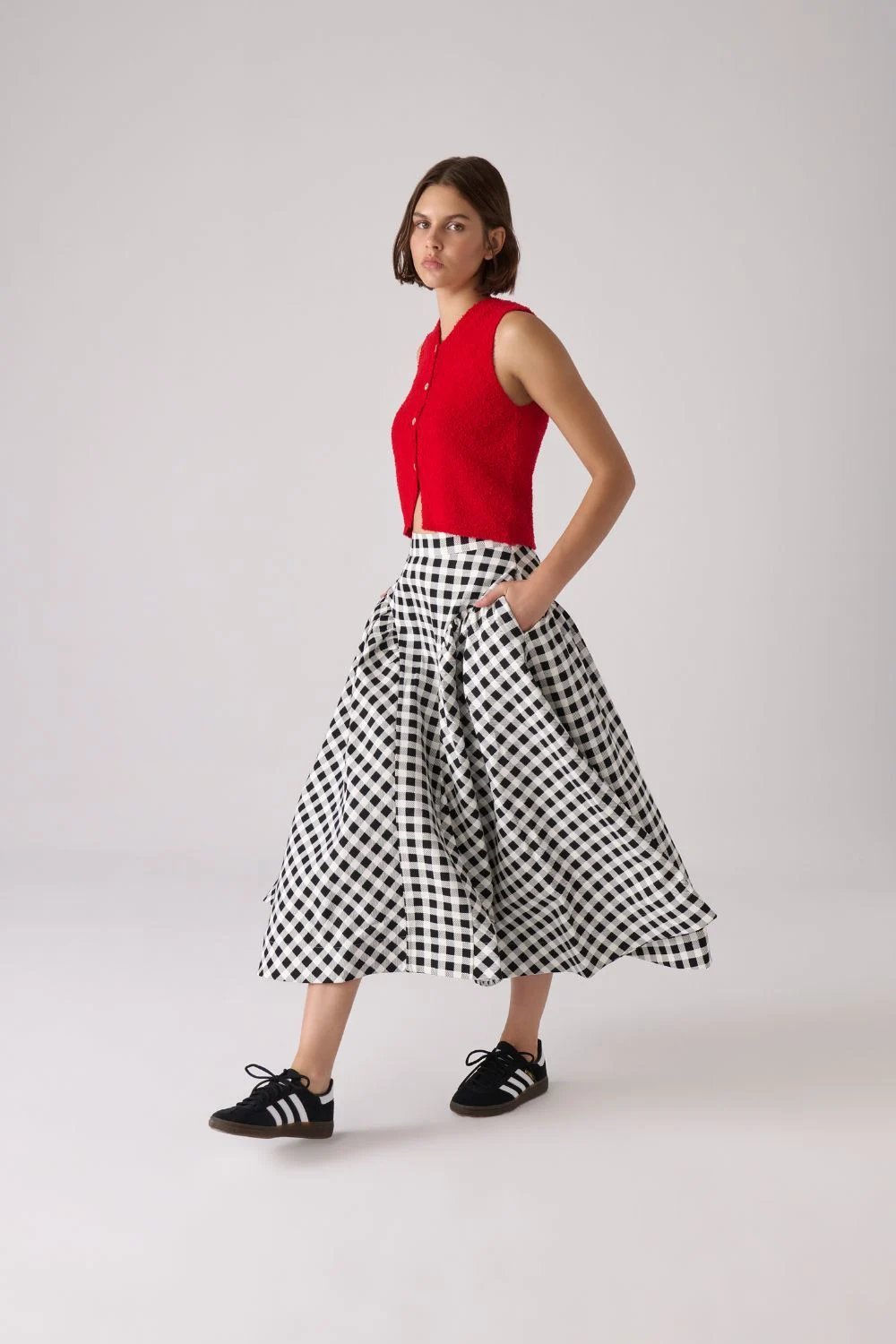 Ürün belden oturan aşağıya doğru pileli inen bir modeldir.