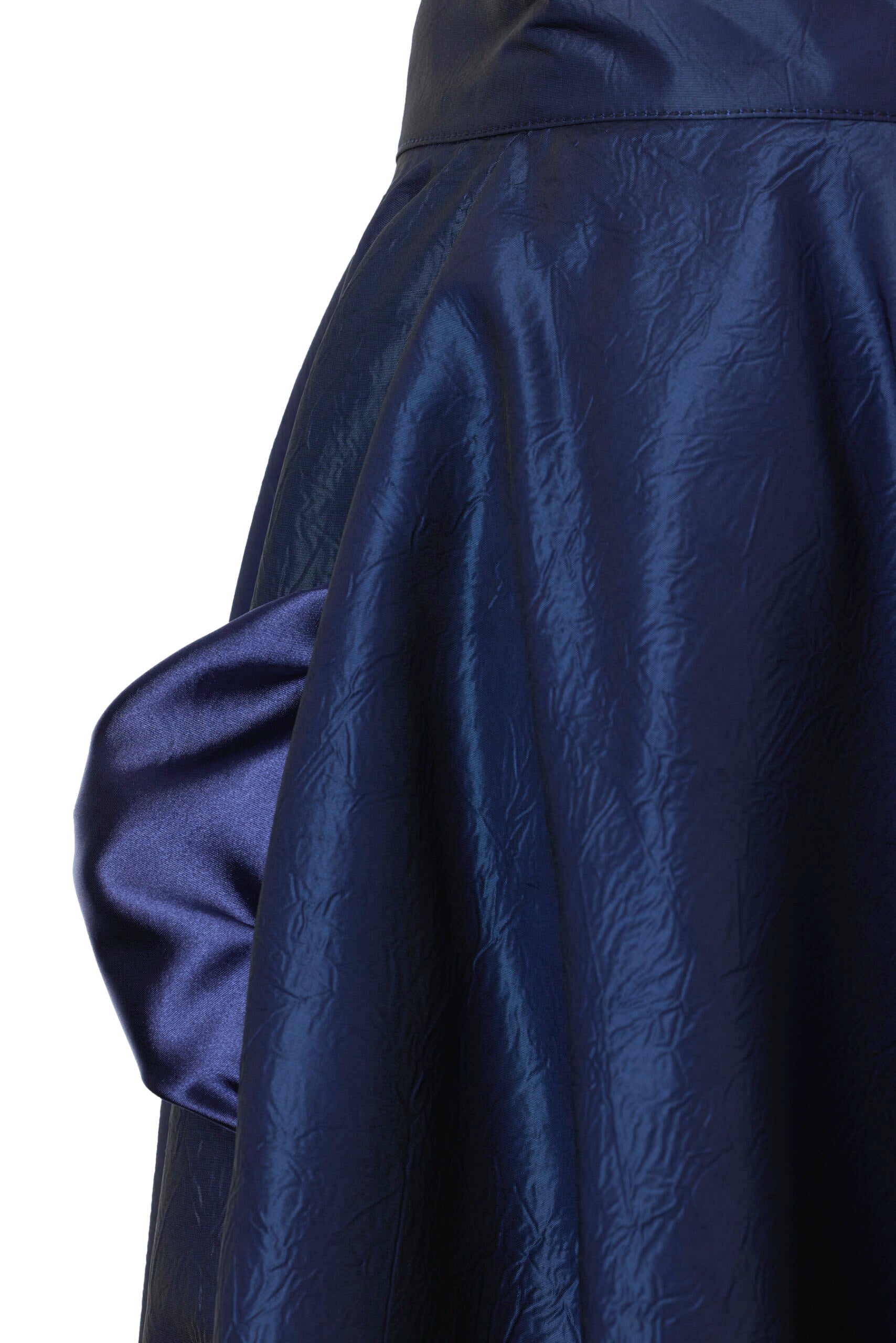 Güçlü ve akıcı bir duruş… Bell Swing; kraş tafta kumatan, ipek astarlı, cep detaylı ve tam daire kloş formuyla hareketli özgür bir duruş sunuyor. Bel kısmı vücudu nazikçe sararak zarif bir denge oluştururken, genişleyen etek yapısı her adımda akıcı ve her döneme uyumlu görünüm sağlıyor.