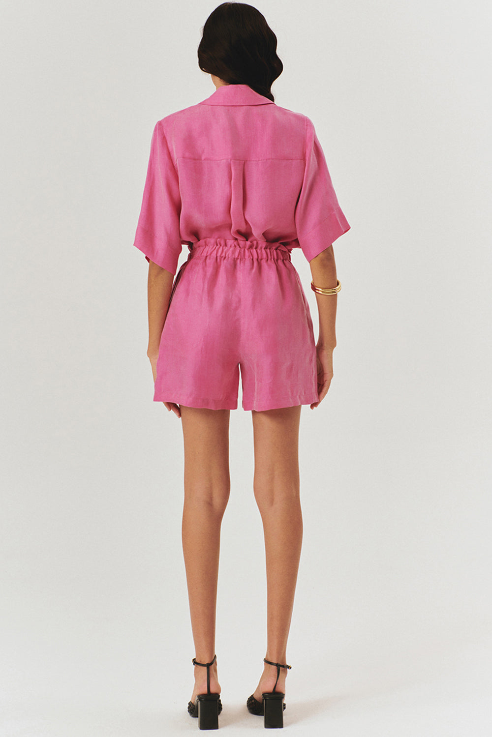 Beli Lastikli Lyocell Regular Pembe Kısa Şort