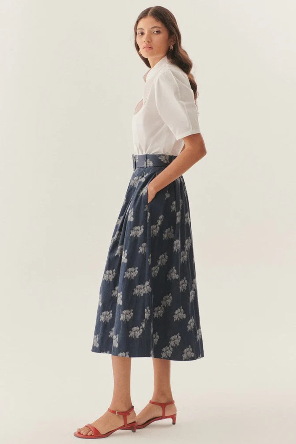 Zarif jakar desenleriyle göz alıcı bir şıklık sunan bu midi boy etek, kendi kumaşından tasarlanan kemeriyle belinizi vurgulayarak feminen bir silüet yaratır. İster klasik stilettolarla tamamlayın ister topuklu sandaletlerle farklı bir hava katın; bu etek, zahmetsizce göz alıcı bir görünüm elde etmenin anahtarı olacak.