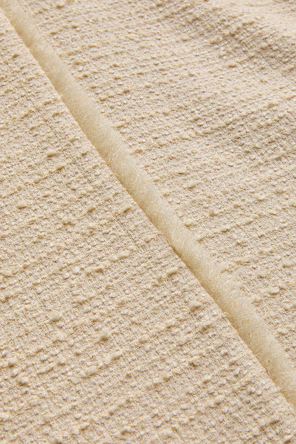 Ekru renk şıklığı, dokulu kumaşın benzersiz konforuyla buluşuyor. Kloş kesimiyle özgürce hareket etmenizi sağlarken şık bir silüet oluşturur. Şıklığı sadelikte arayanlar için gardırobun vazgeçilmez parçası olmaya aday!