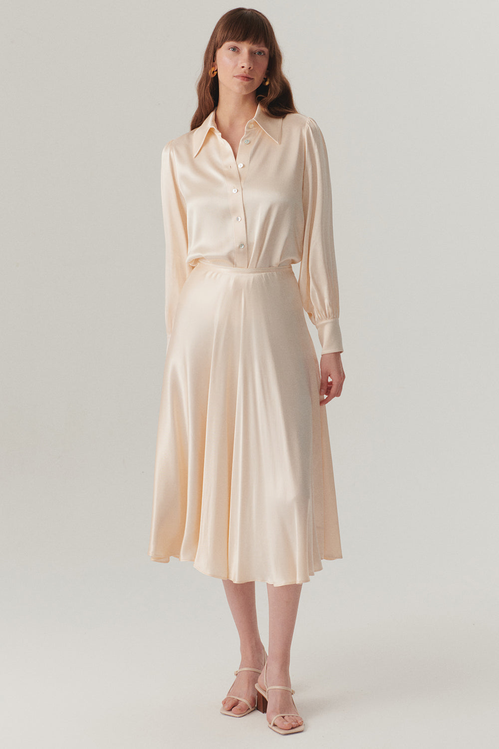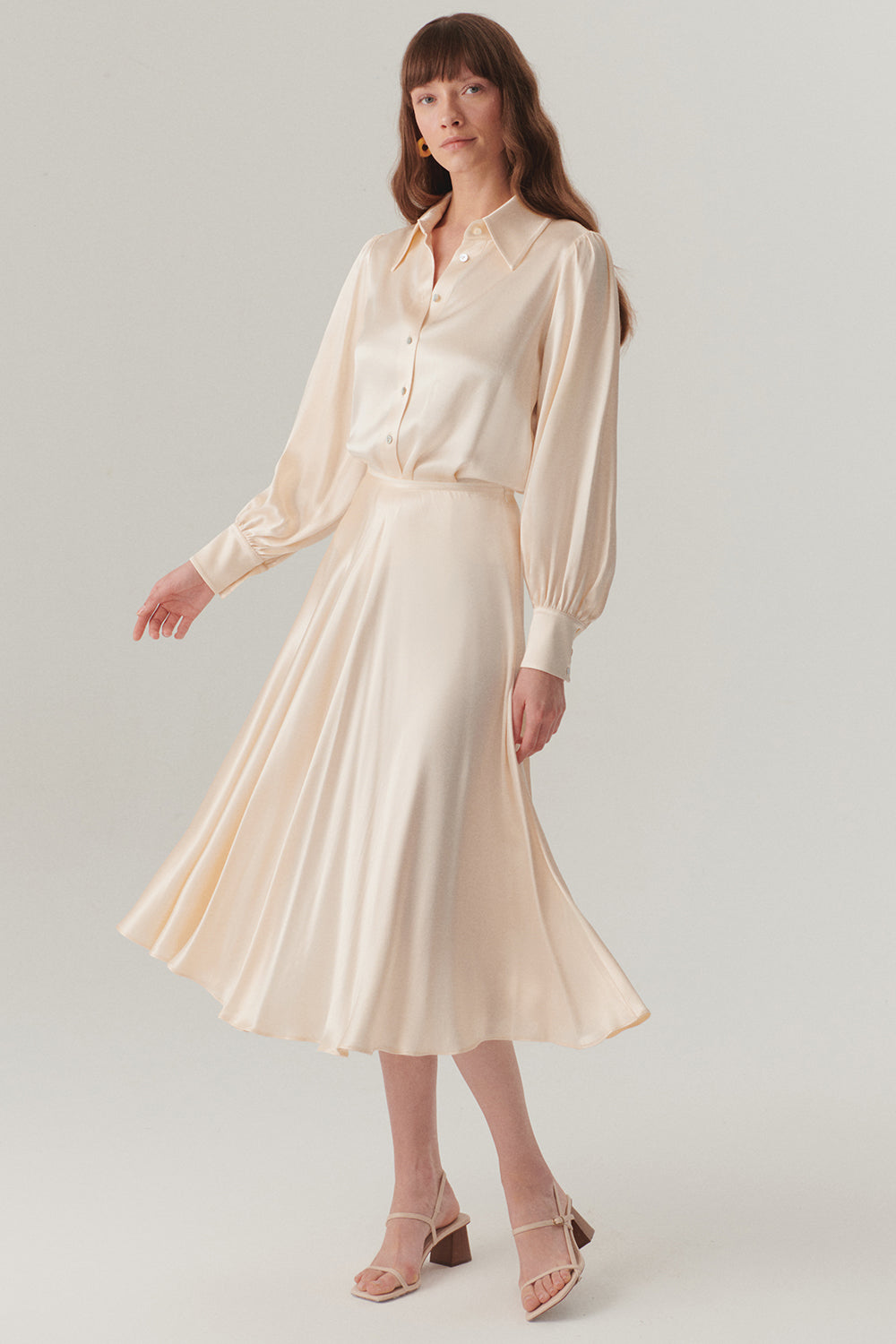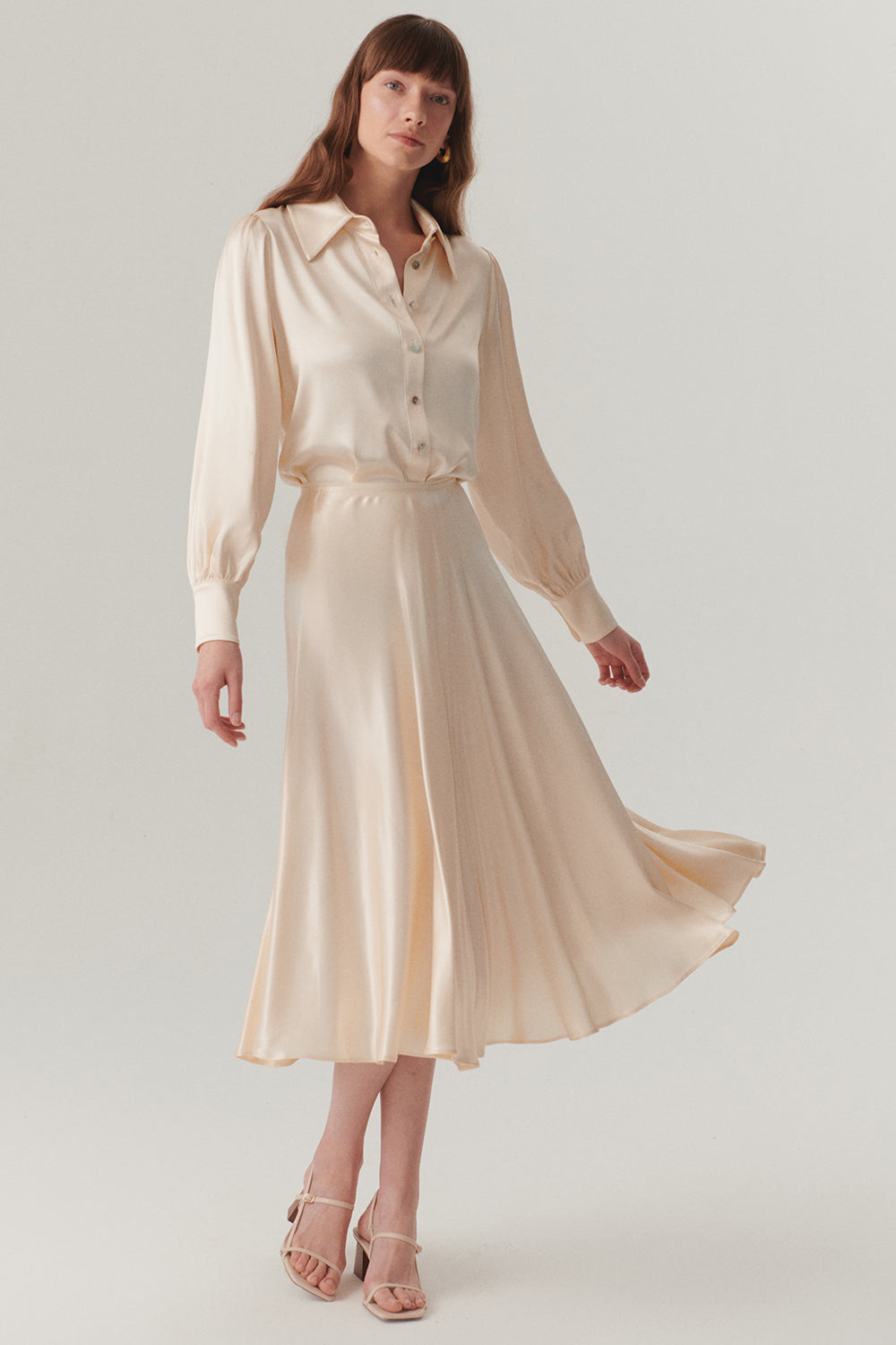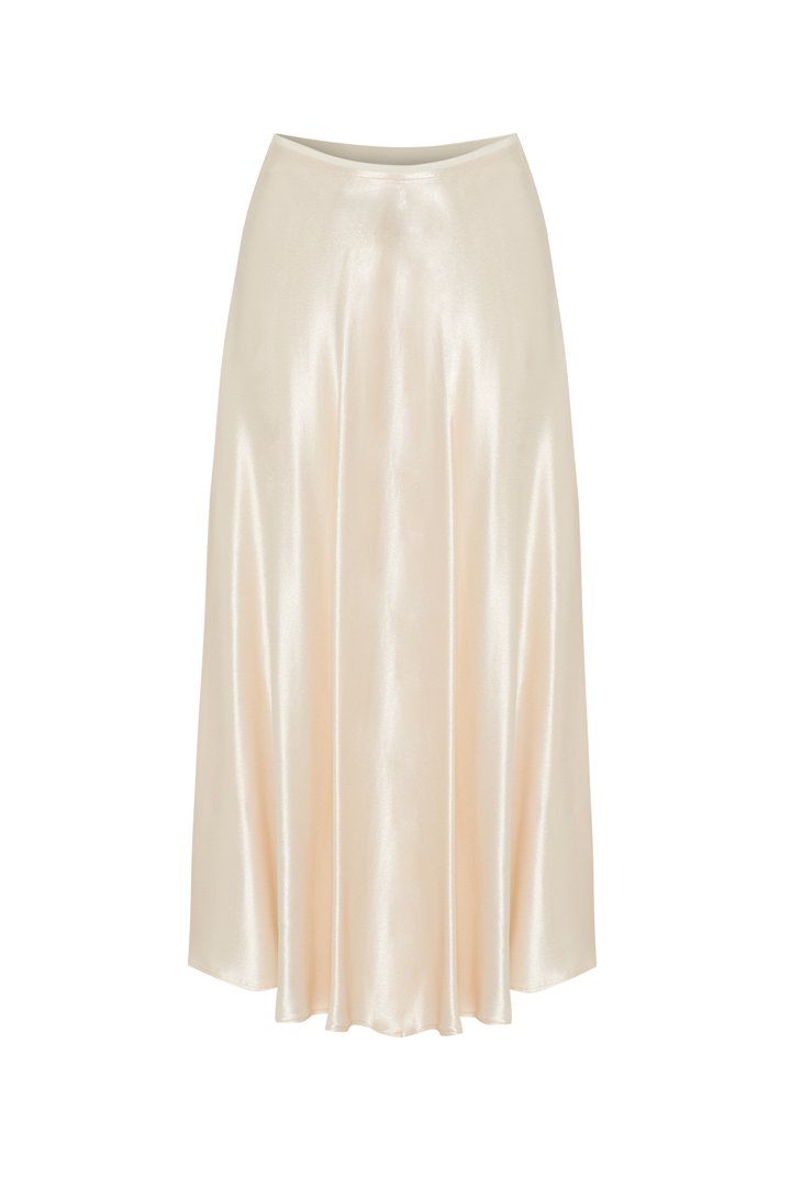 Parlak Kumaş Saten Kiloş Midi Boy Etek