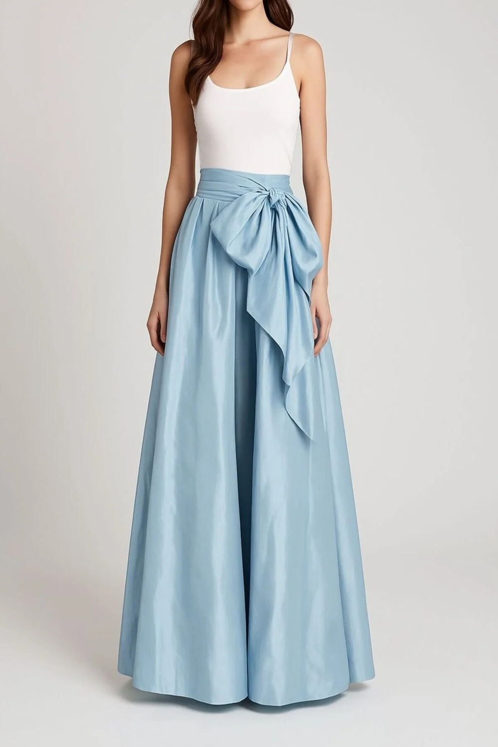 Kuşak Detaylı Buz Mavi Tafta Maxi Boy Şık Tam Daire Etek