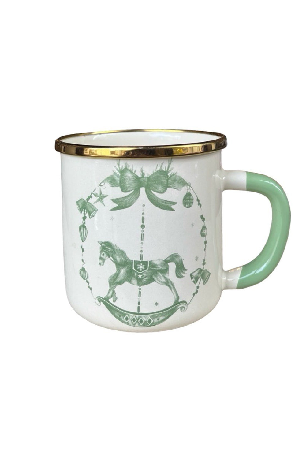 xyirmiyedikuzguncuk Christmas Carousel Emaye Kupa Pastel Yeşil