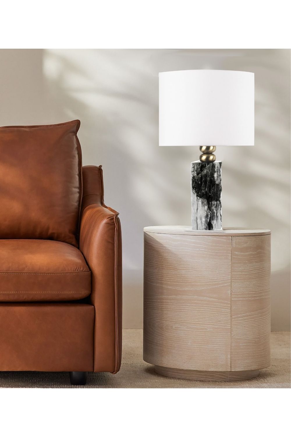 Modern Tasarım Siyah/ Beyaz Mermer Abajur – Krem Başlık