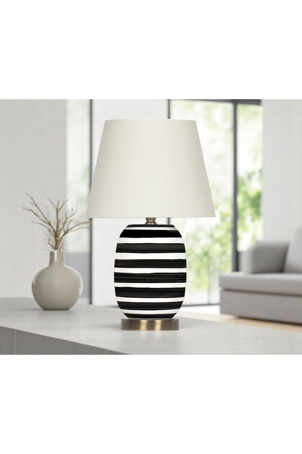 Madrid Seramik Abajur – Siyah Beyaz Çizgili Modern ve