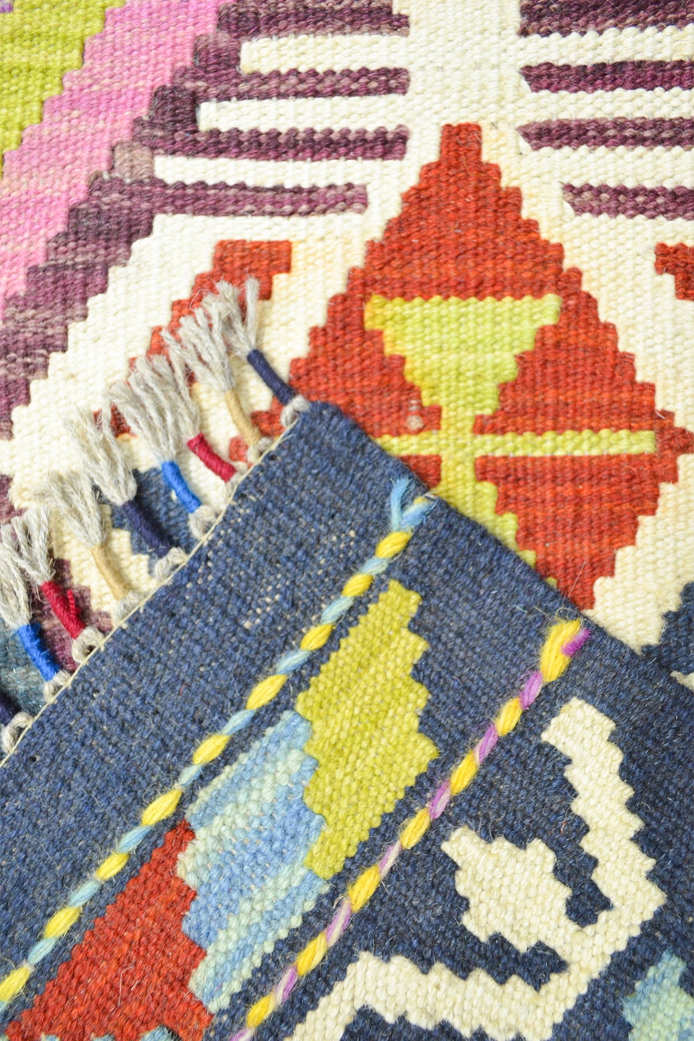 Afgan kilimleri, düz dokuma teknikleri ve geometrik desenleriyle bilinir. Renklerin cesur kullanımı, hem otantik hem de modern dekorasyonlarda dikkat çekici bir vurgu yaratır. El işçiliğinin doğal izlerini taşıyan bu kilim, her ilmeğinde ustalarının emeğini yansıtır.