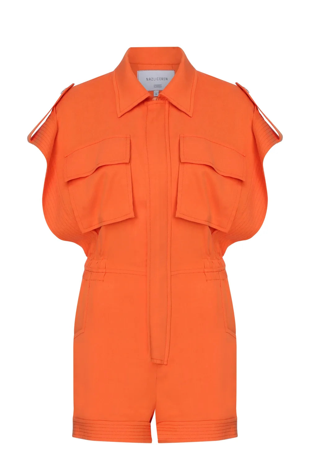 Aleiada Tulum, elastik bel, yan slip cep, göğüs kısmında kapaklı cebe sahiptir ve önden fermuarlıdır. Yumuşak Tencel kumaştan üretilmiştir.