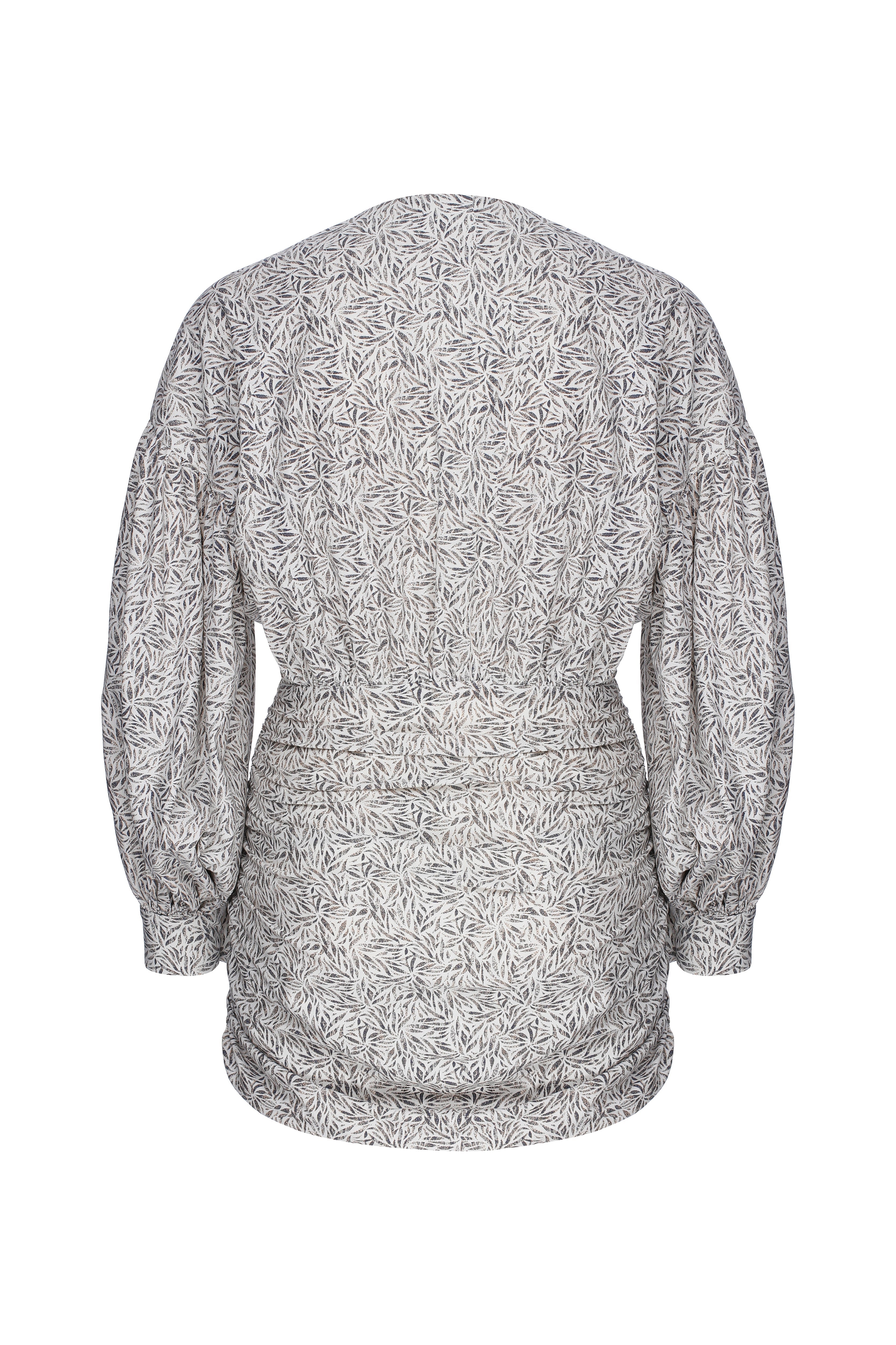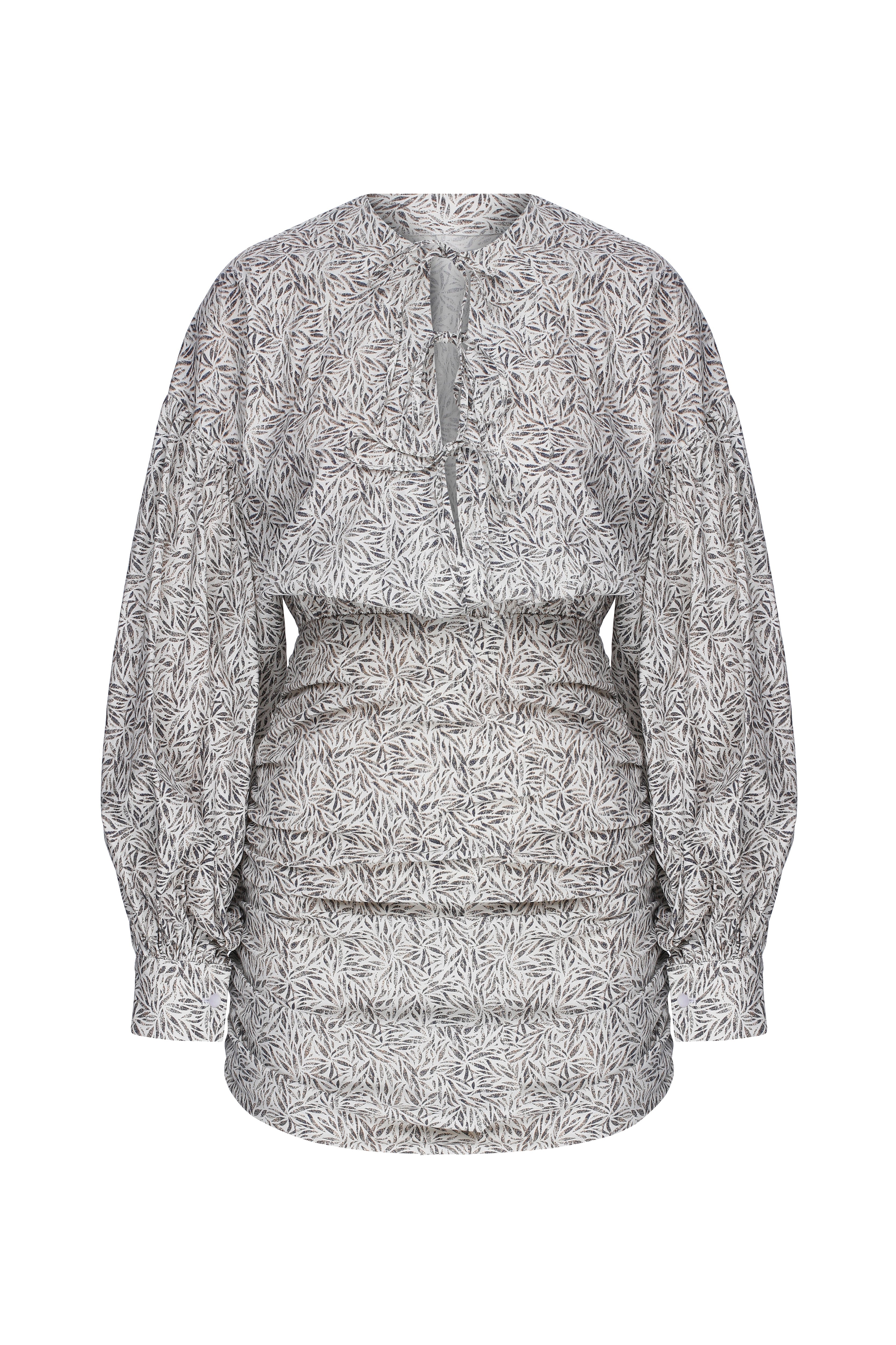 Carlotte Elbise, derin V yakalı, düşük omuzlu, balon kollu ve önden bağlamalıdır. Poplin kumaştan üretilmiştir.
