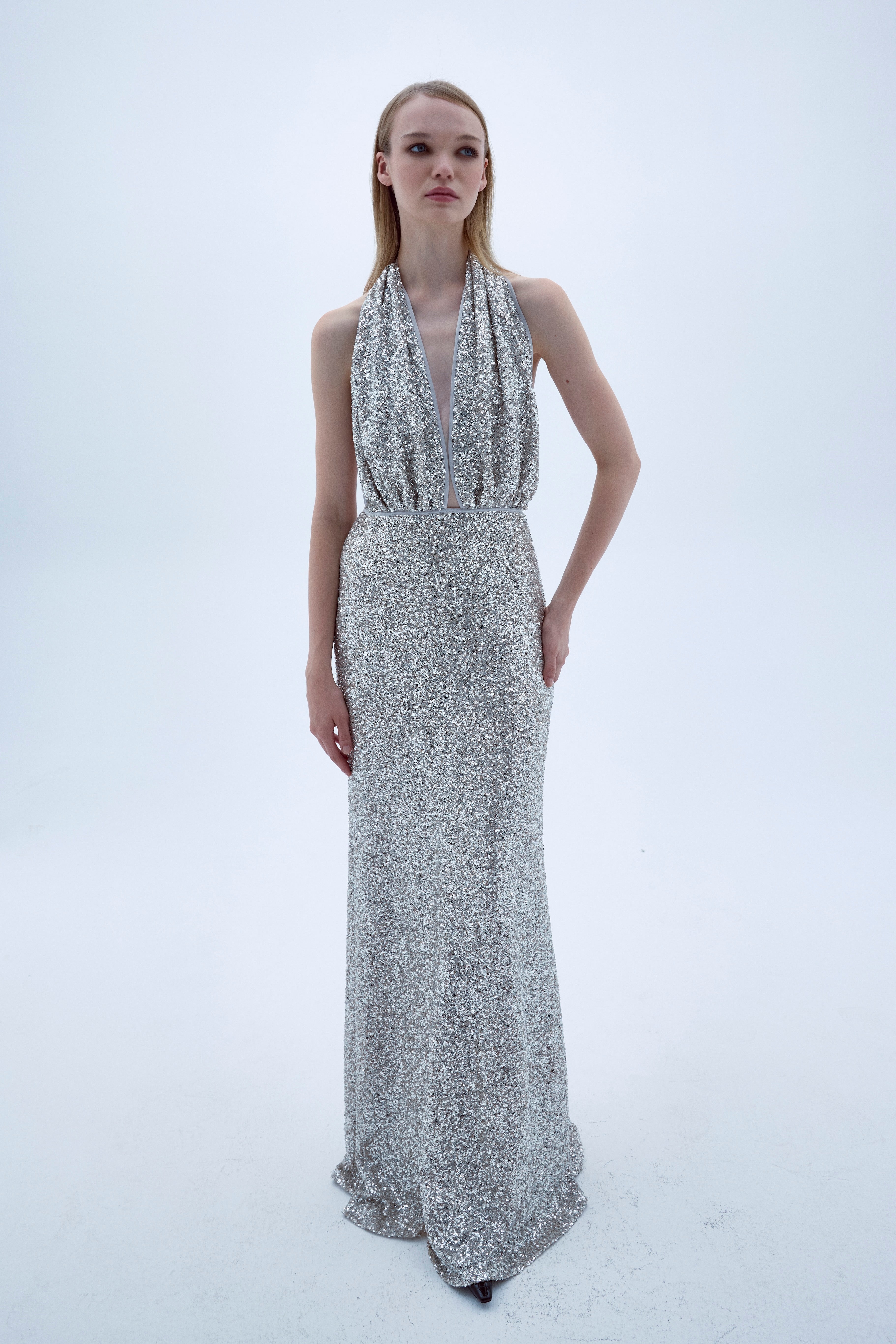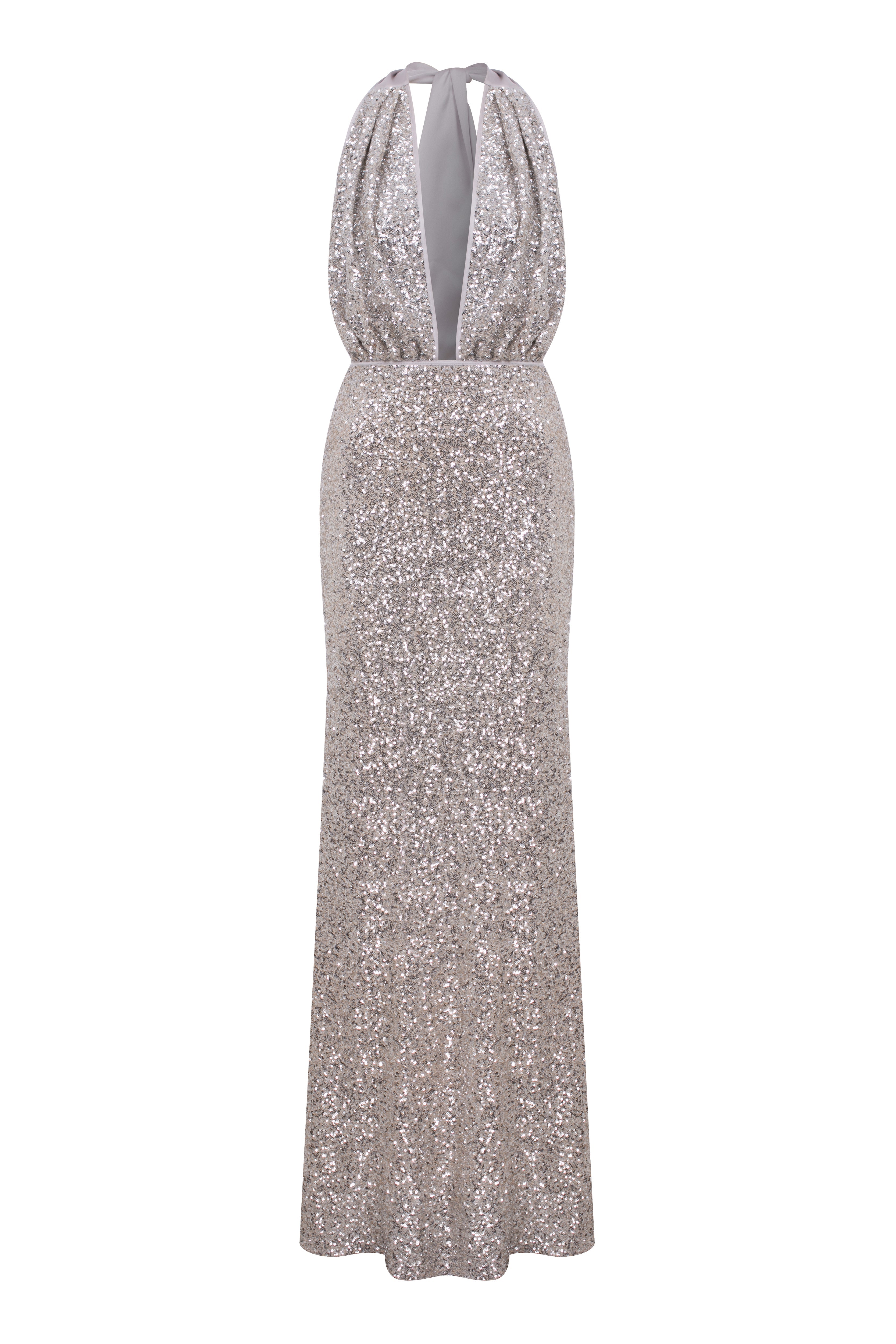 Payetli Ines Elbise, göz alıcı ışıltısıyla dikkat çeker; etkileyici bir gümüş-altın tonunda parlayan payet kumaşla tasarlanmıştır. Zarif drapajlarla ince bir şekilde şekillendirilen bu tasarım, doğal hatlarınızı vurgularken, çarpıcı derin V yaka detayıyla da etkileyici bir dokunuş ekler. Öne çıkmak ve parlamak isteyenler için mükemmel bir seçenek olan Ines Elbisesi, her türlü özel etkinlikte dikkatleri üzerinize çekmek için idealdir.