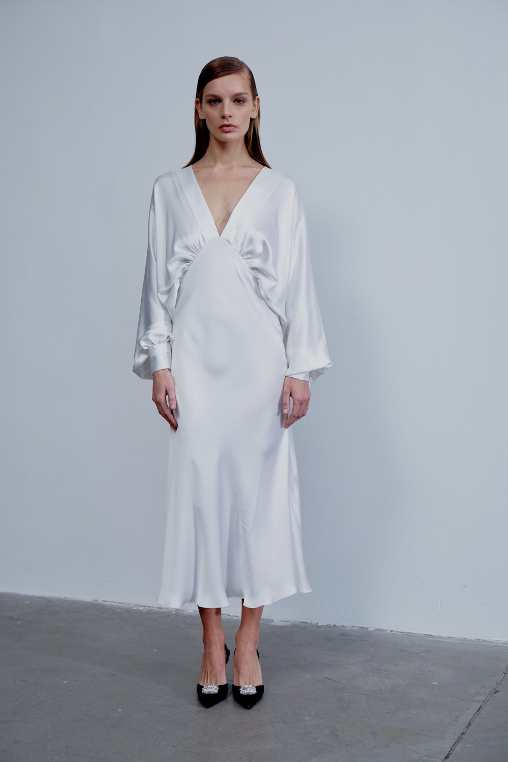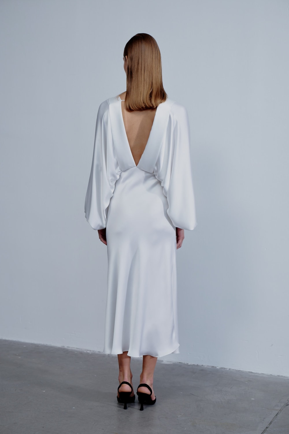 Mila Saten Elbise, Zarif Bir Düğün Günü Veya Özel Etkinlik Seçeneğidir, Derin V Yakalı Ve V Şeklinde Sırtlı İle Yumuşak Satenden Üretilmiştir.