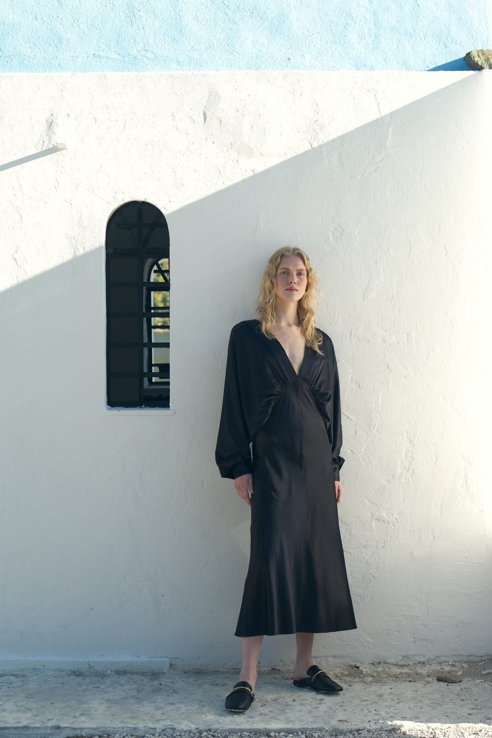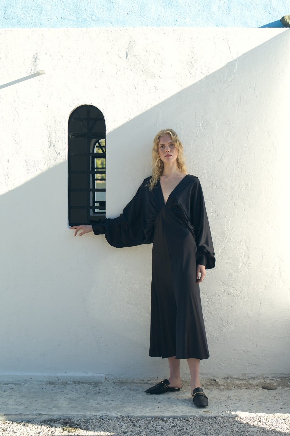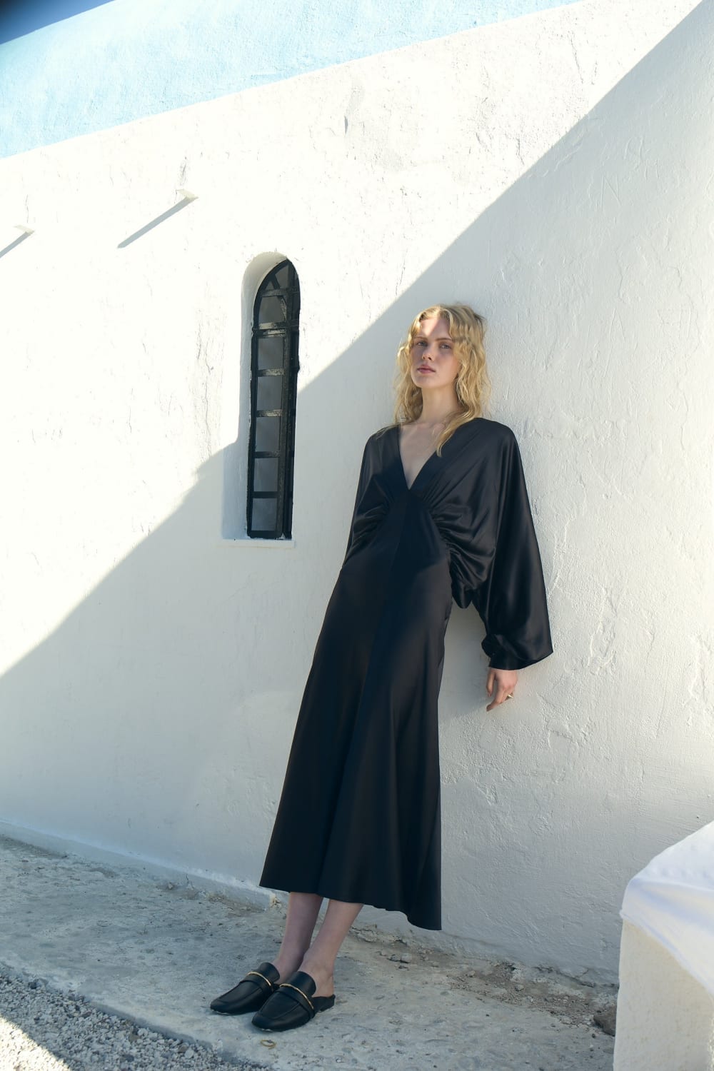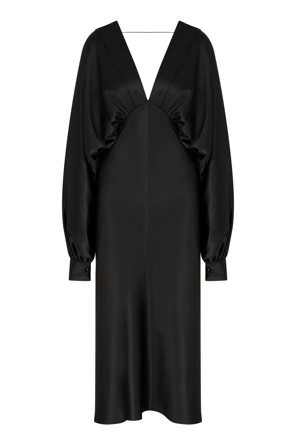 Mila Saten Elbise, zarif bir düğün günü veya özel etkinlik seçeneğidir, derin V yakalı ve V şeklinde sırtlı ile yumuşak satenden üretilmiştir.